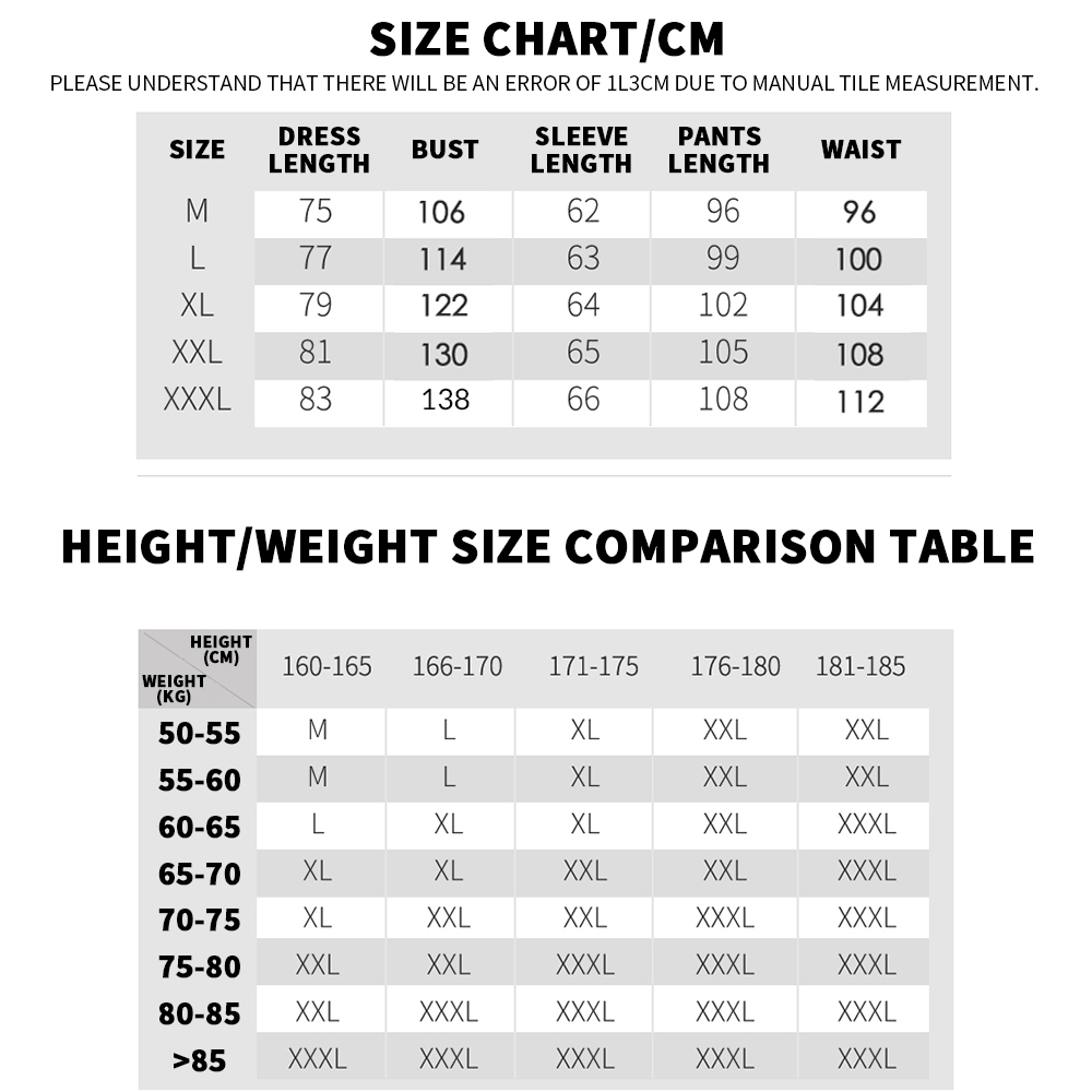 5. 3XL:185cm up