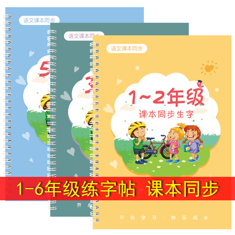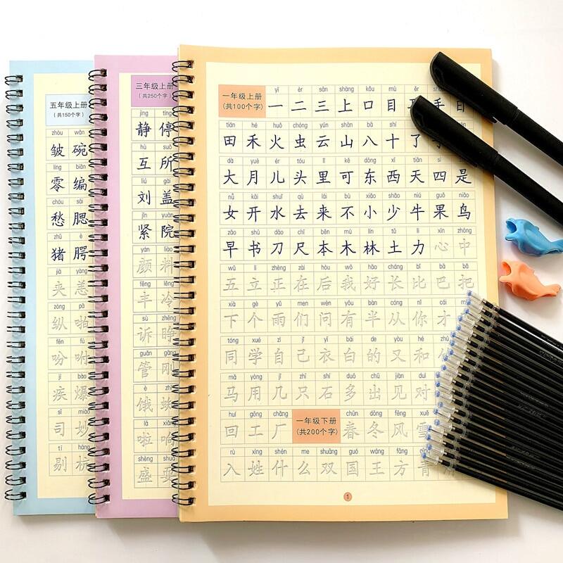 3pc Reusable 3D Groove Practice For Copybook Synchronized Textbooks Chinese Characters Children Practice Art Writing Books Age 6-18