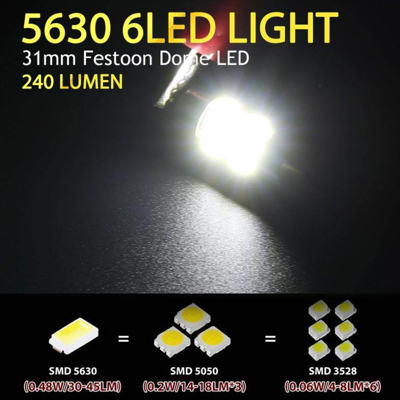 2pcs LED Car Interior Dome Light Bulbs 31mm 12V 5630 6 SMD Globe Au Canbus Festoon