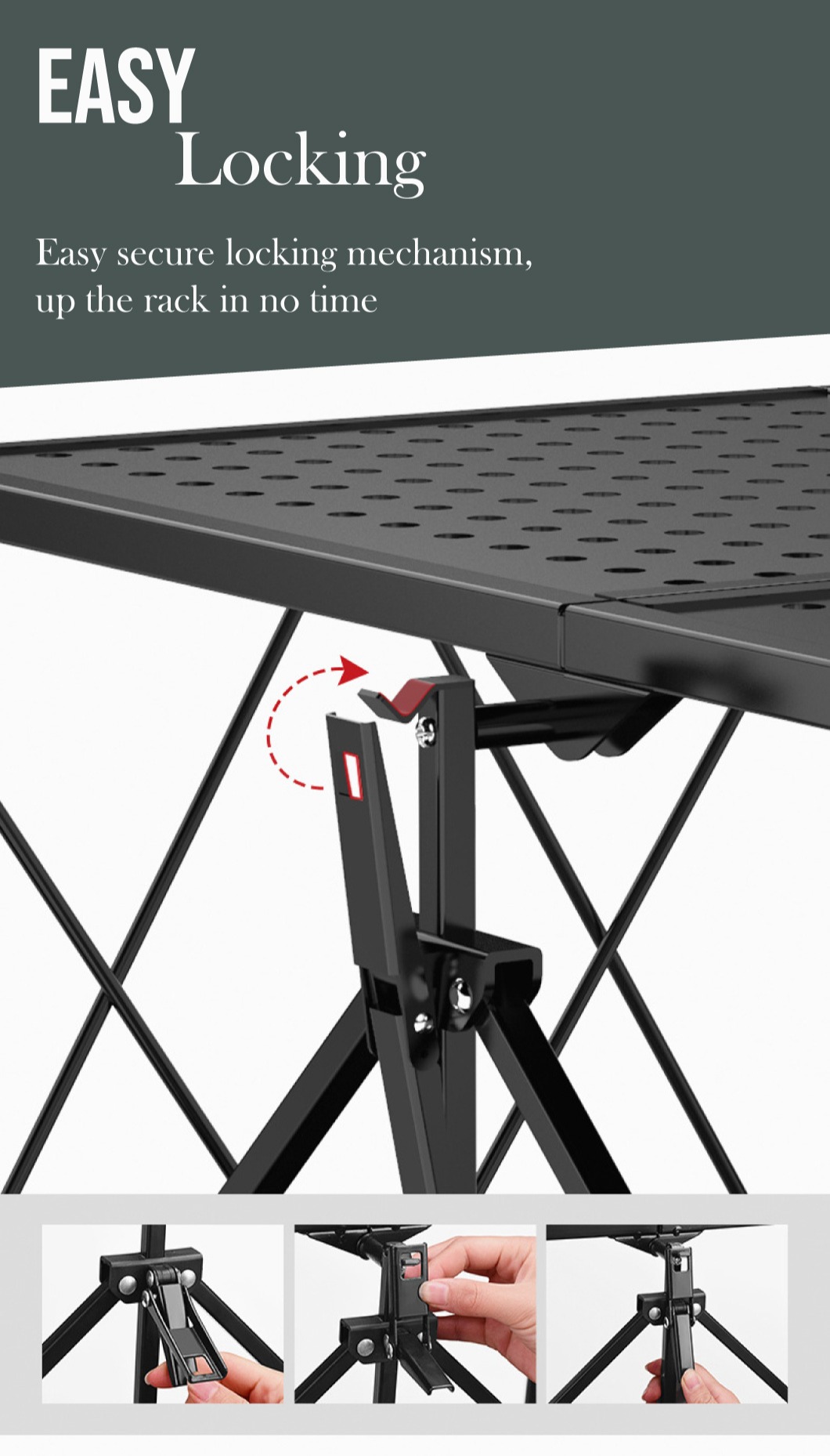 • Easy locking - easy locking mechanism, up the rack in no time