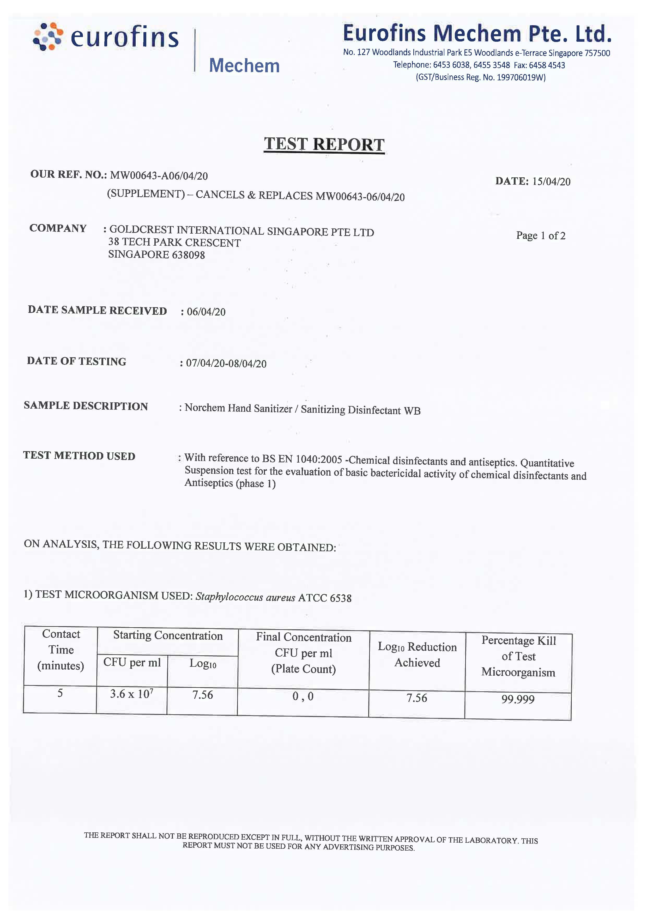 Norchem Non Alcohol Sanitizing Disinfectant WB Spray Bottle 500ml