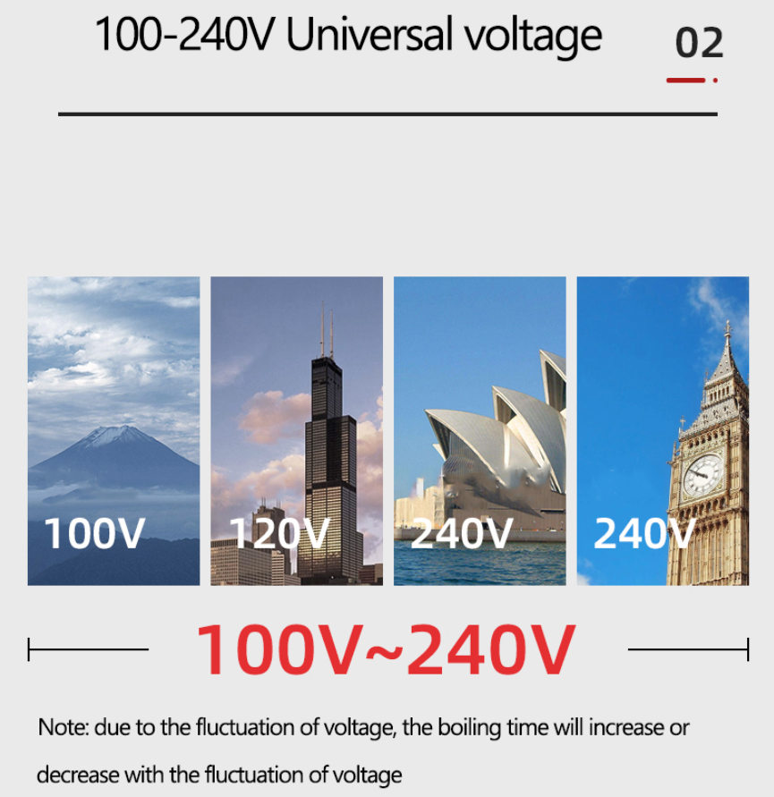 convenient for global travel notice:the boiling time may be extended due to voltage.