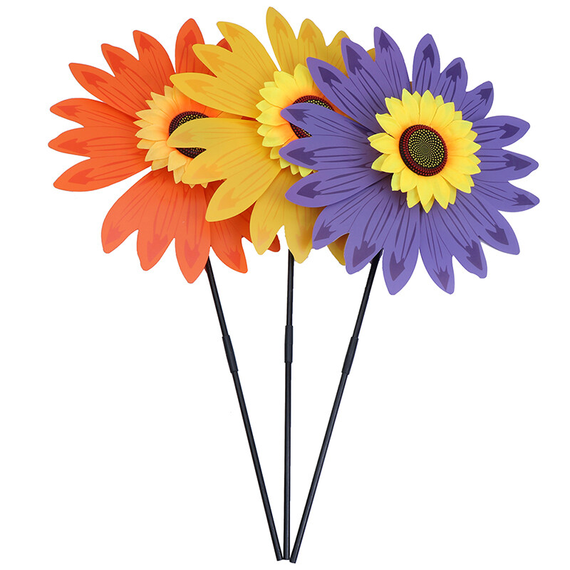 Double Layer Sunflower Windmill Wind Spinner Kids Toys Yard Garden Decoration