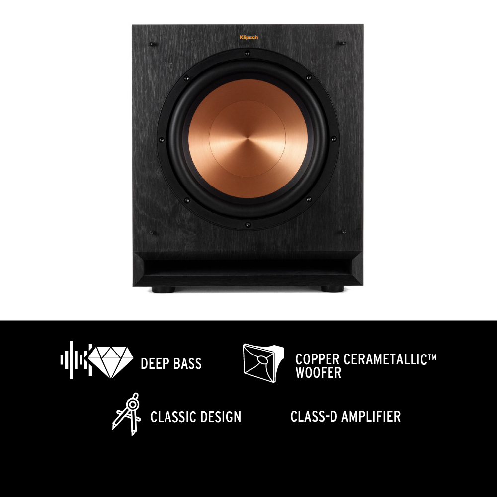 Klipsch R-41PM Active Bluetooth Bookshelf Speaker + Klipsch SPL-100 Subwoofer (Soundbar Alternative For TV)