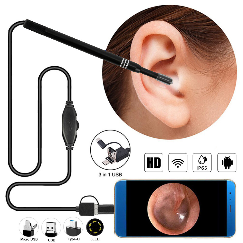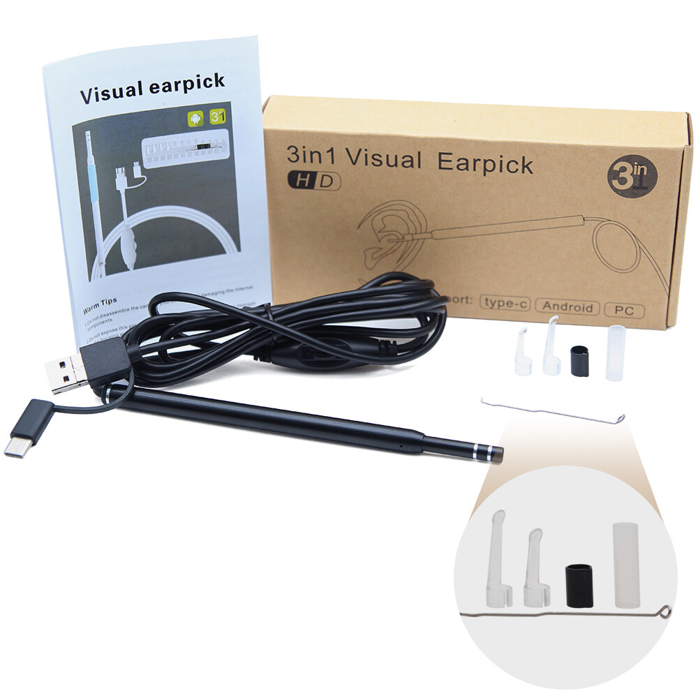 3 in 1 USB Ear Cleaning Endoscope HD Visual Ear Spoon Earpick With Mini Camera 5.5mm 6 Adjustable Light Endoscope for Android Mobile Phone Laptop