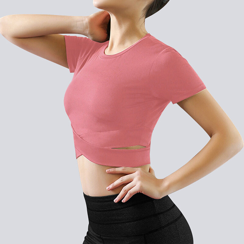 Women Short Sleeve Running Shirts Sexy Exposed Navel Yoga T-shirts Solid Sports Shirts Quick Dry Fitness Gym Crop Tops Sport Wear