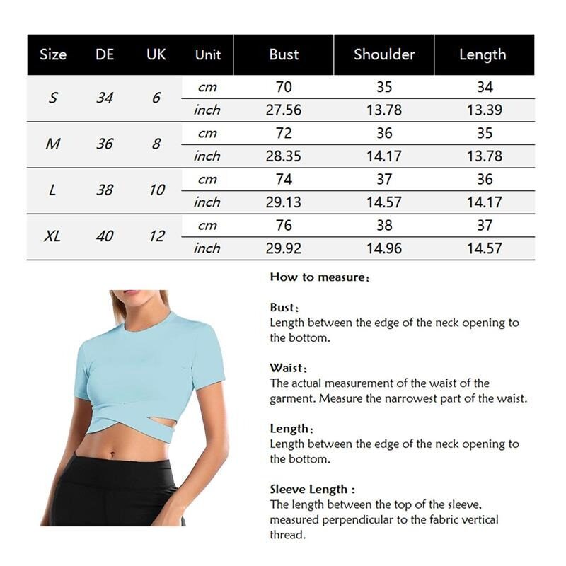 Features:Women Yoga Shirts Solid Color Running Shirt Sexy Sports Top Fitness Crop Top Sport Gym Clothes Tops SportswearNotice:For manual measurement, please allow 1-3cm error Color:gray,black,whiteSize:S-XLMaterial: 92% polyester fiber + 8% spandexPackage Includes:a pcs TopSize: please allow 1-2cm differs due to manual measurement, thanks.Note: Due to the difference between different monitors, the picture may not reflect the actual color of the item. We guarantee the style is the same as shown in the pictures, but not the same performance on different bodies as on the model. Thank you!