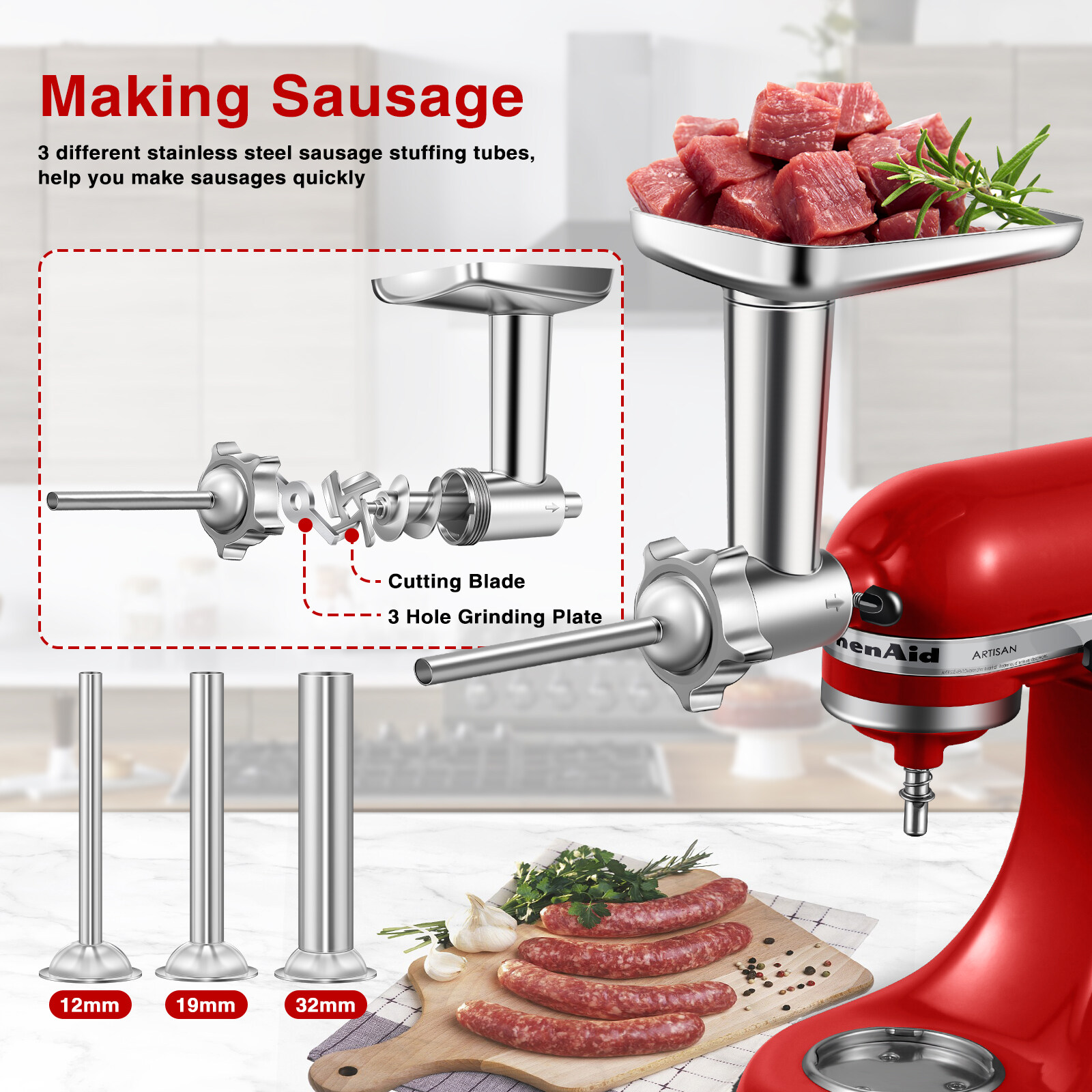 Product Name: Meat Grinder, Sausage Stuffer, Grinder Attachment For KitchenAid Stand Mixer