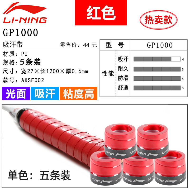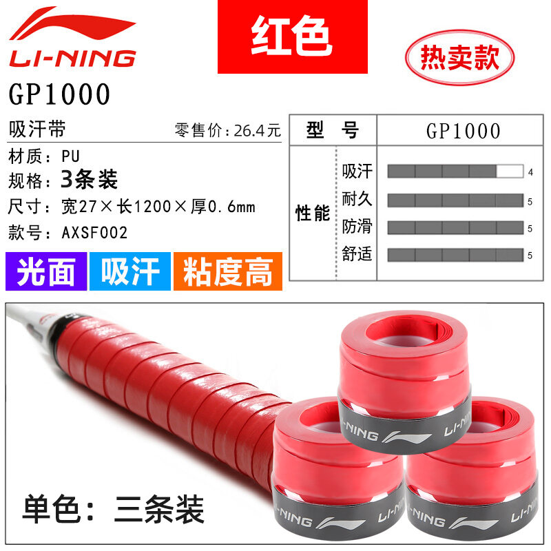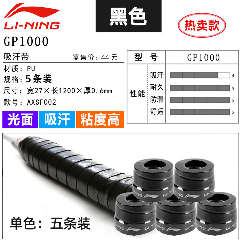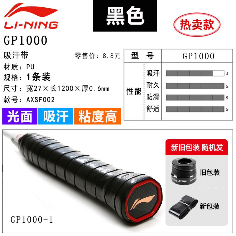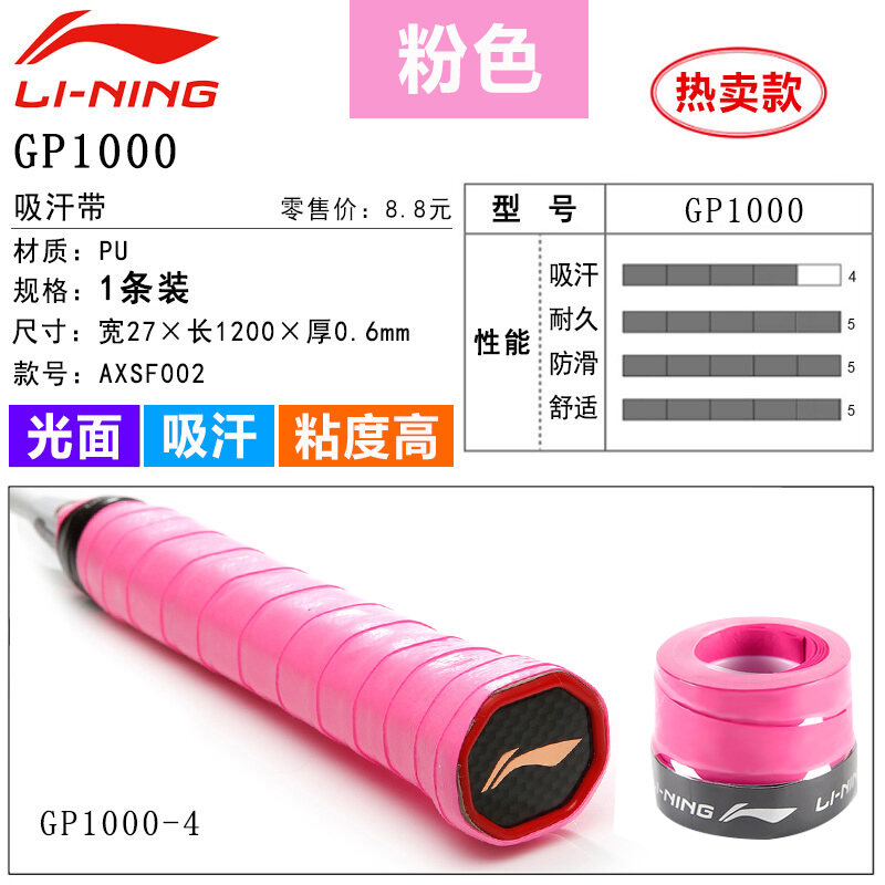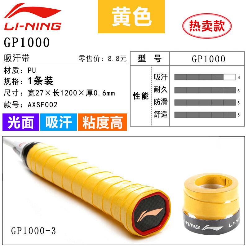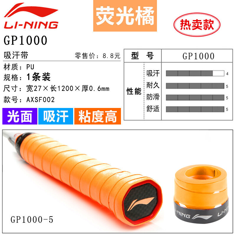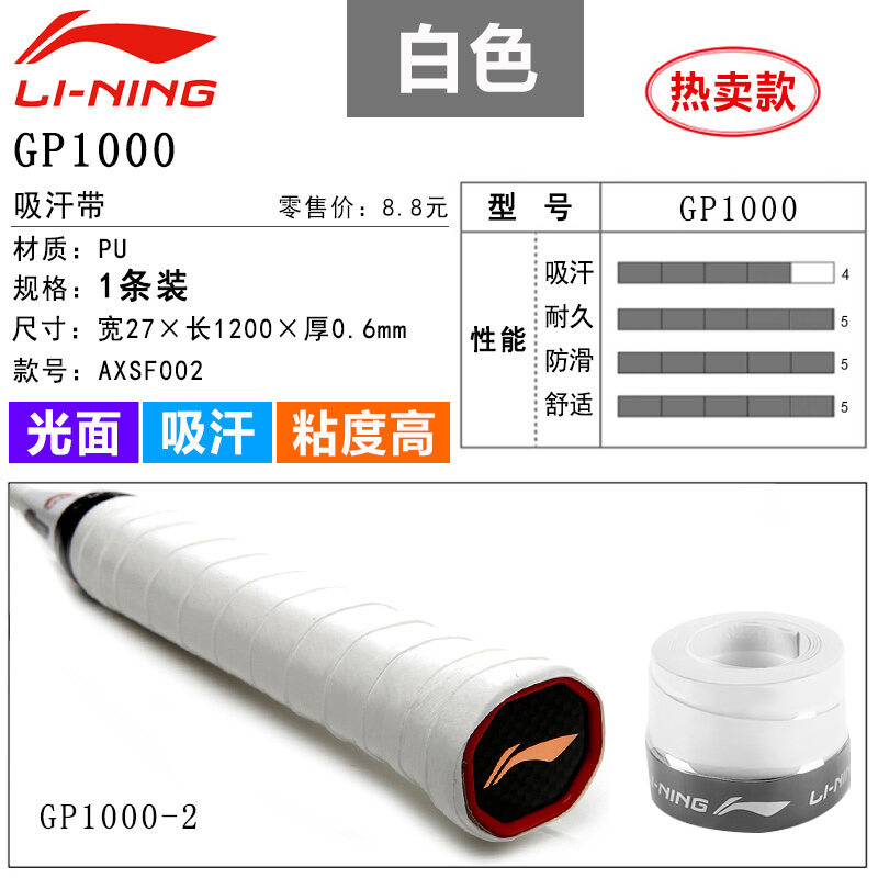 Li Ning Badminton Hand Glue Non-Slip Sweat Absorbing Badminton Racket Cover Tennis Racket Strap Handle Winding Gp1000