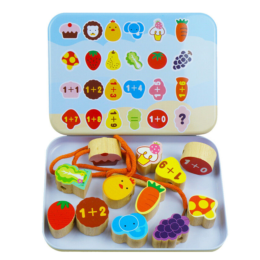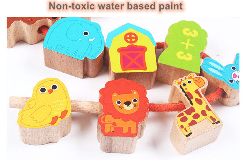 Moulty Wooden Lacing Beads for Toddlers, Fine Motor Montessori Toys for Toddlers 2 3 4 Years Old, Wooden Toys Animals Fruits Vegetables for Kids,Preschool Educational Activities Gift for Boys Girls
