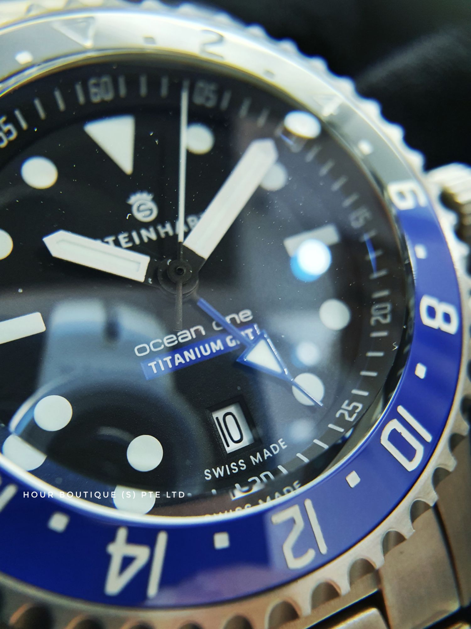 Swiss Made Steinhart Ocean 1 Titanium Black Blue Ceramic Bezel GMT Men's Automatic Divers Watch