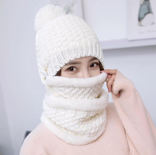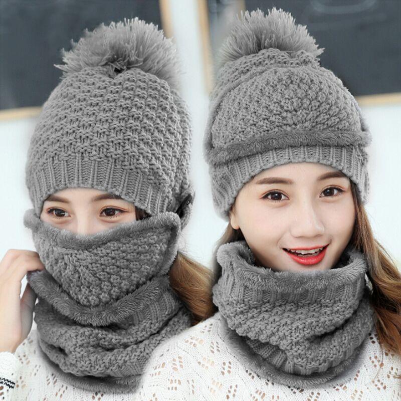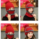 1 set(3pcs) Winter Hat Scarf Mask Set Thick Warm Knit Outdoors Ski Beanie Hat and Scarf For Women - intl