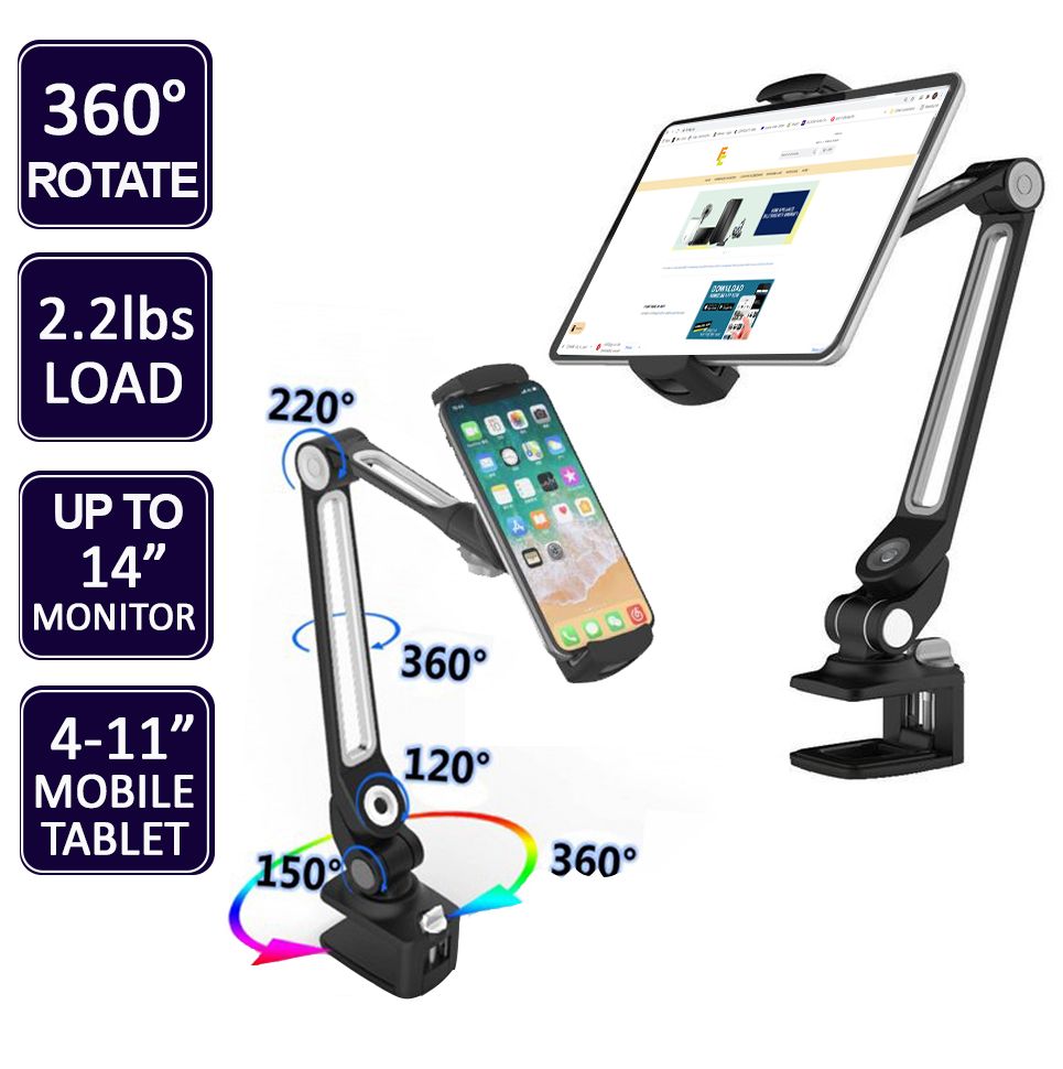 Laptop Stand Tablet / Mobile Flexi Holder Mount Clamp 360 Deg Adjustable