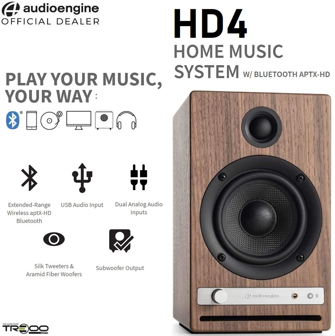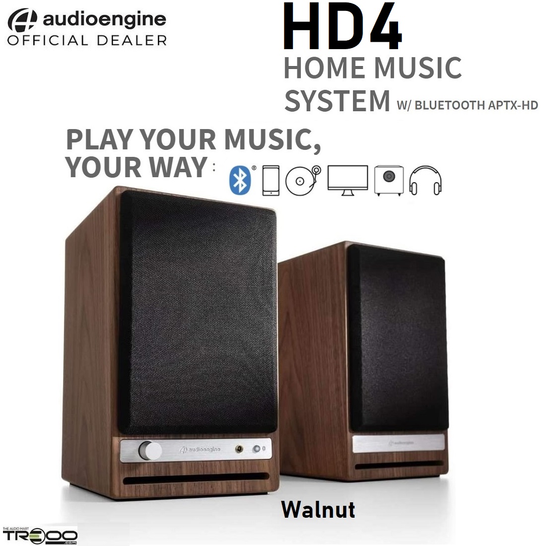 Audioengine HD4 Wireless aptX-HD Bluetooth 5.0 Stereo Desktop Bookshelf Speakers