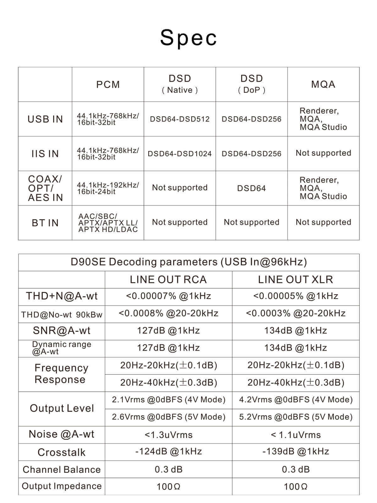DSD (Native): DSD64 - DSD1024