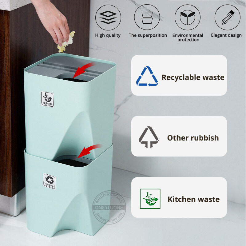 Onetwone Creative Sorting Trash Can Stackable Recycling Can Dry and Wet Separation Dustbin Household Garbage Bins with Lid Kitchen Classification Rubbish Bucket Bathroom Waterproof Waste Container Cle