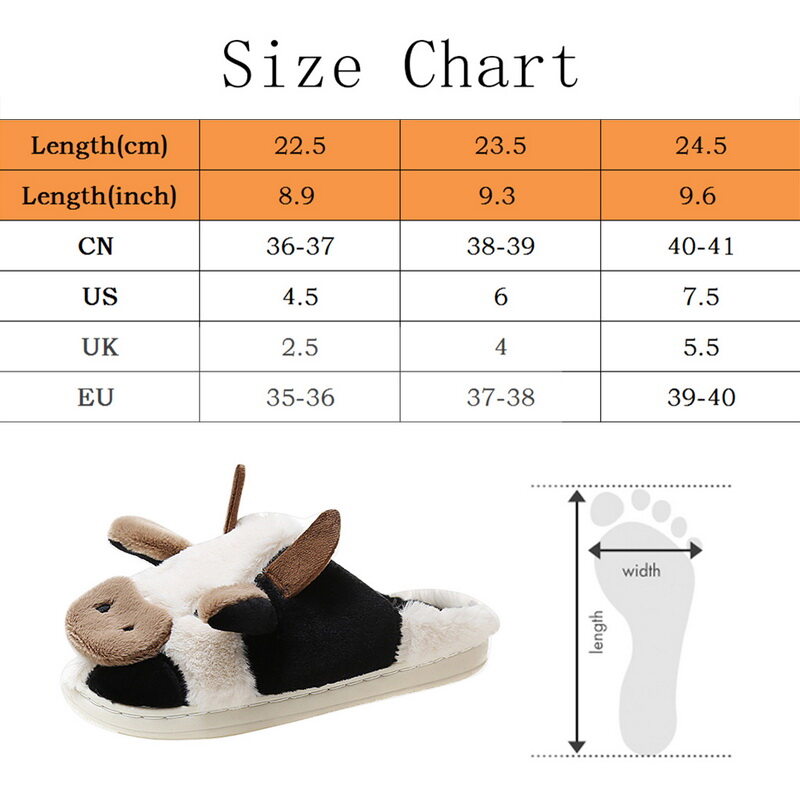 Features:Winter Cartoon Couple Slippers Home Fur Slippers Women Warm Cotton Slippers Cute Animals Indoor Thickening Notice:For manual measurement, please allow 1-3cm error Size:36-37,38-39,40-41 Color:Cow slippers,Cow cotton shoes Material:EVA+ suede Package Includes:a pair shoes Size: please allow 1-2cm differs due to manual measurement, thanks. Note: Due to the difference between different monitors, the picture may not reflect the actual color of the item. We guarantee the style is the same as shown in the pictures, but not the same performance on different bodies as on the model. Thank you!