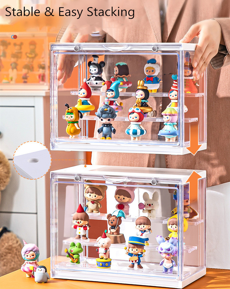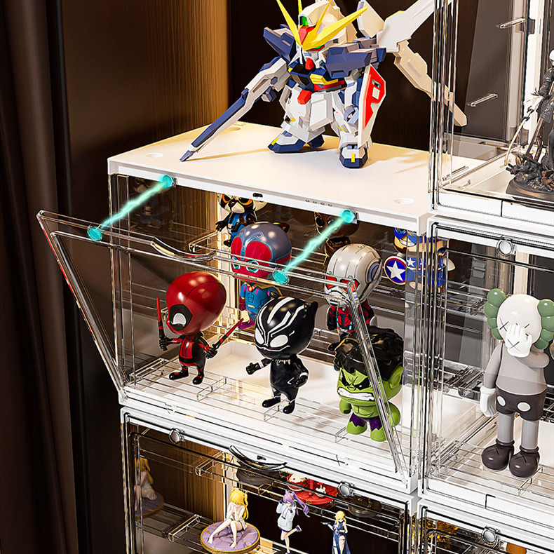 LED Light Fully Transparent Display Case Blind Box Lego Popmart Storage with Rack Shelf