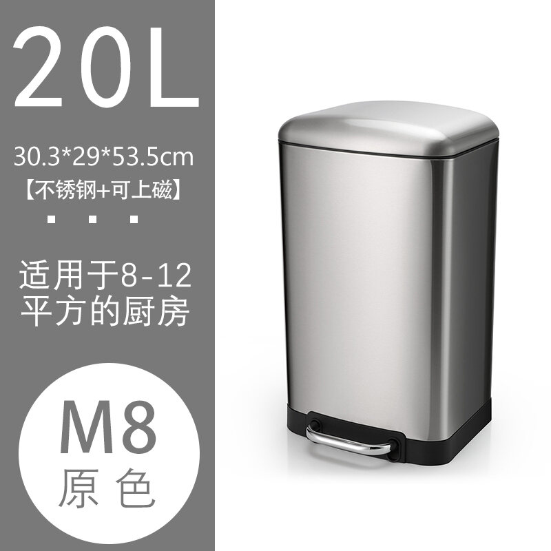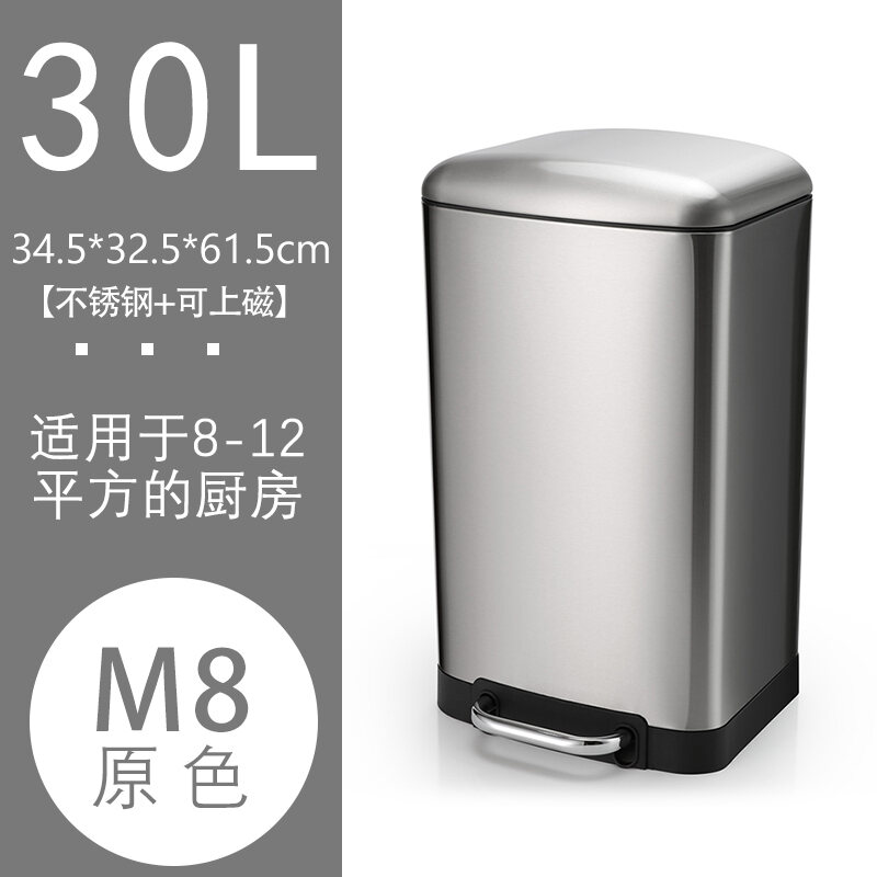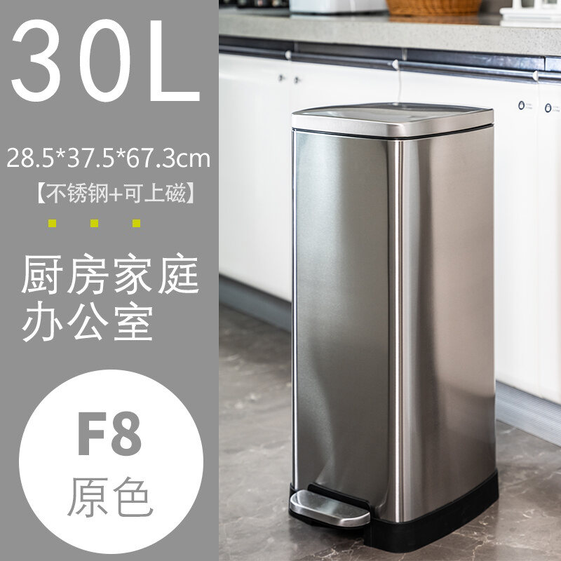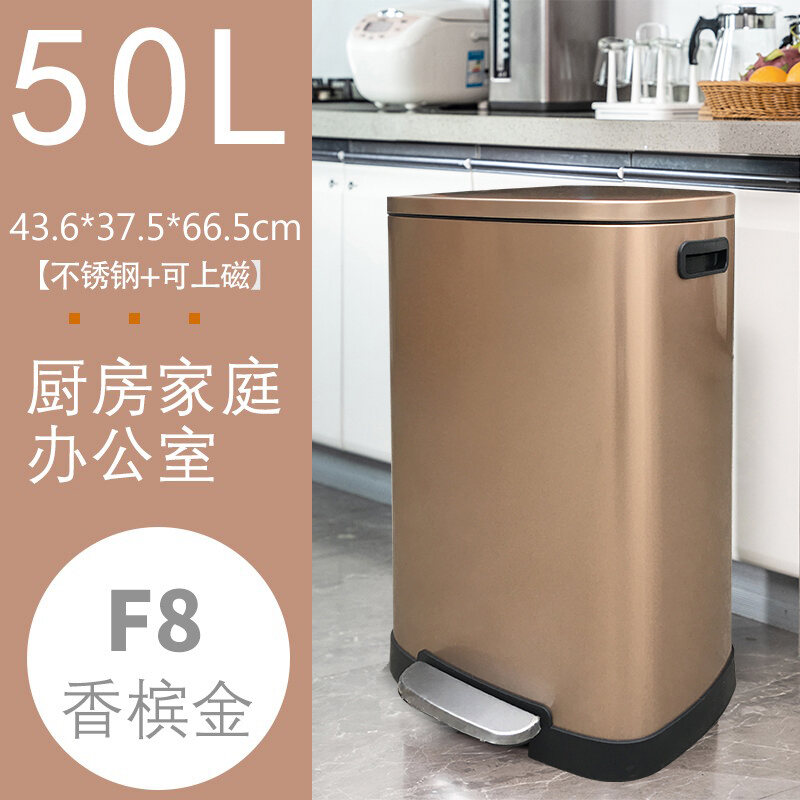 Household Stainless Steel Trash Can 30L Kitchen Large Pedal Living Room Office Large Capacity Commercial with Lid 50L