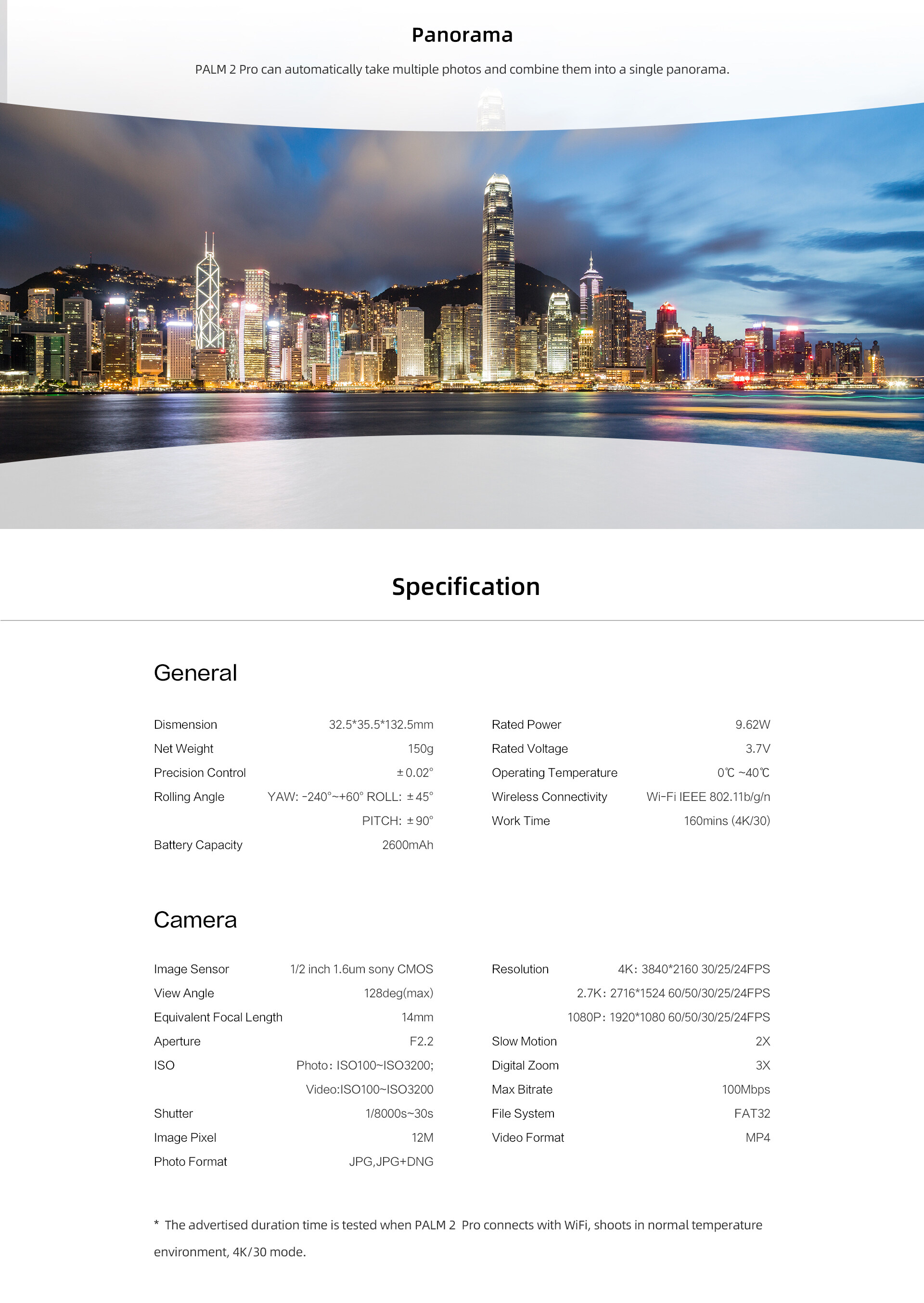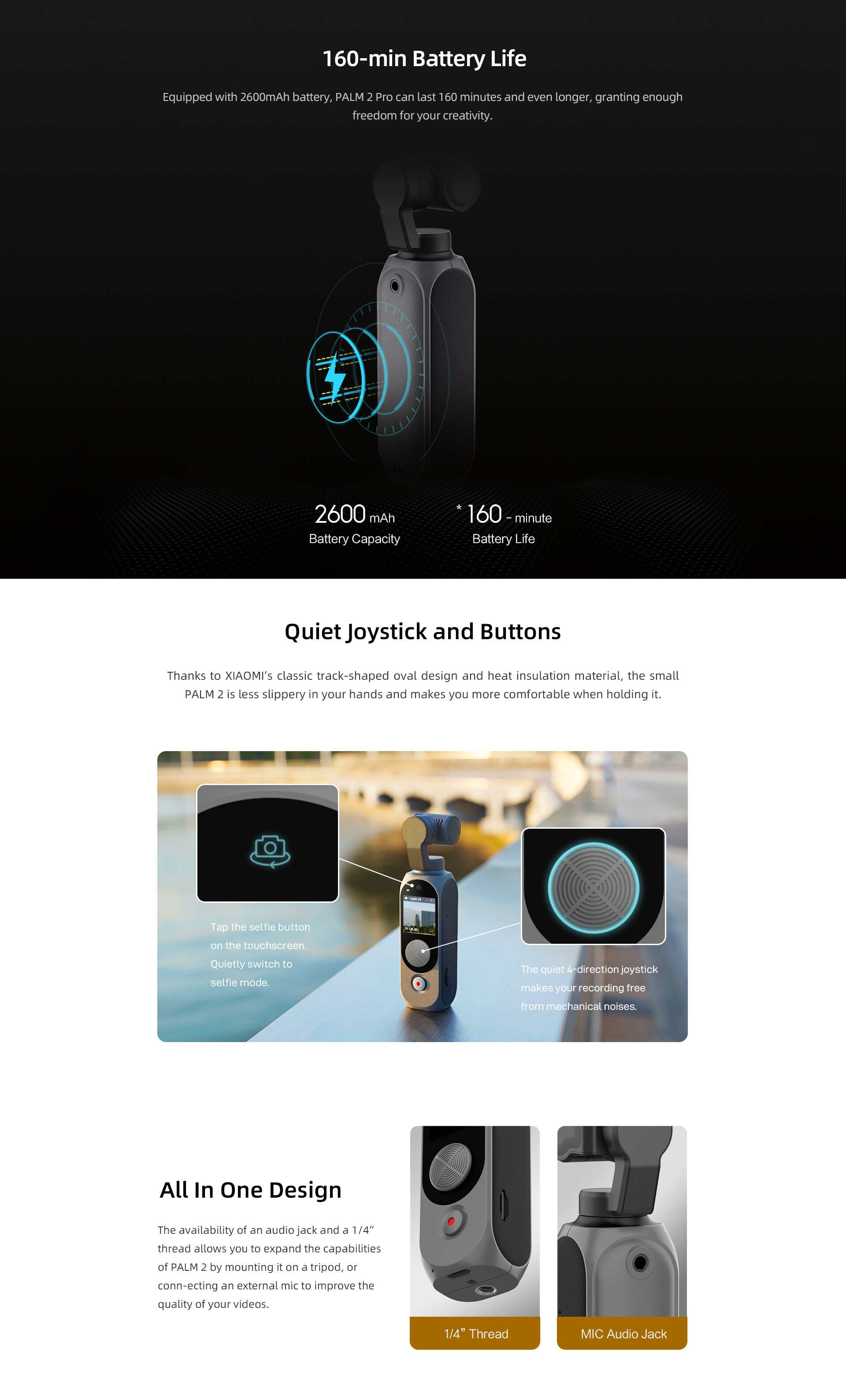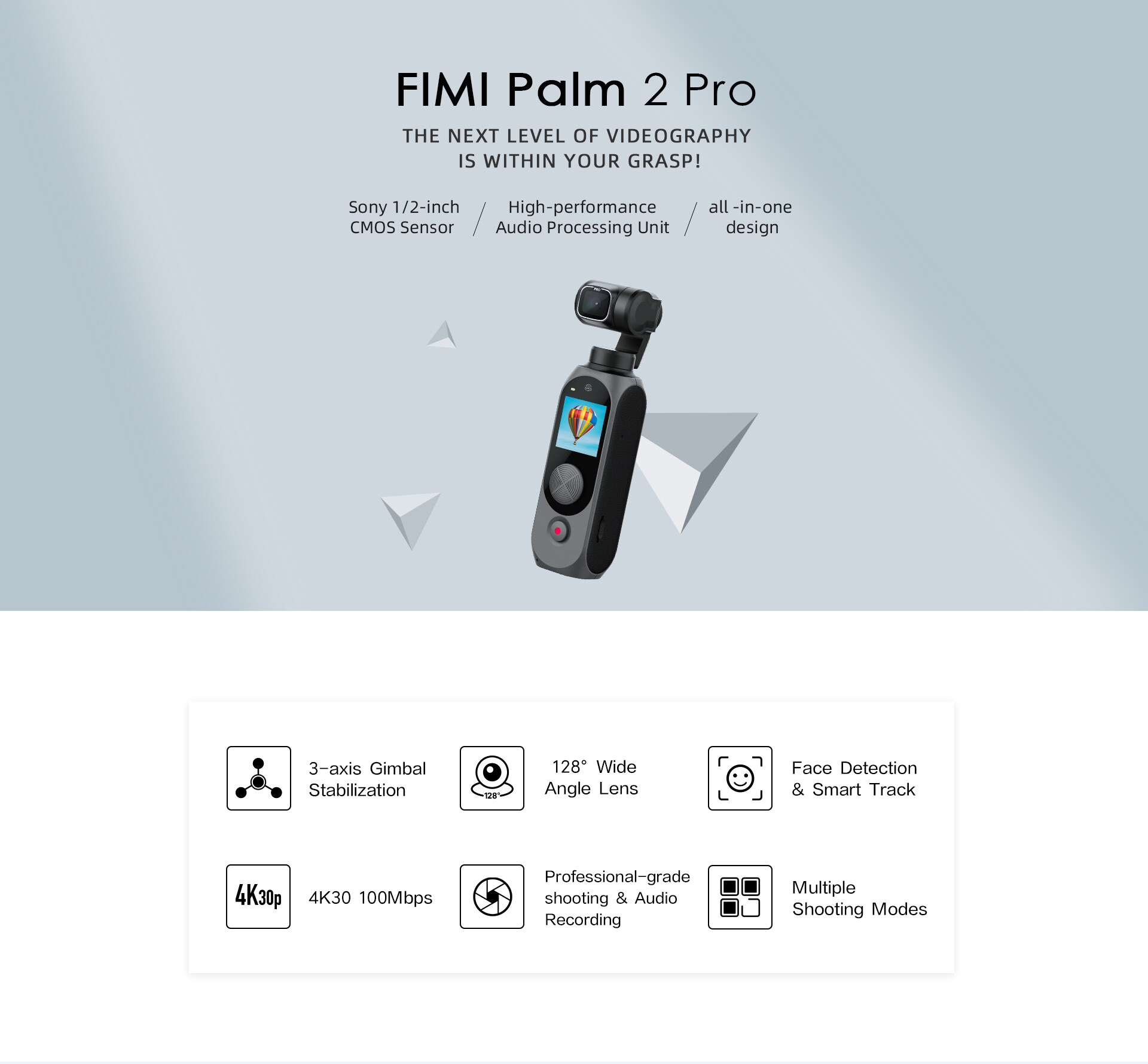 FIMI PALM 2 Pro 3-axis Handheld Gimbal 1/2 Inch Sensor 4K 30fps 160 Minute Mechanical stabilization FIMI Original Pocket