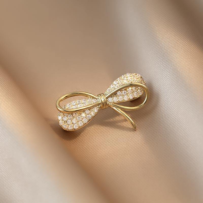 Fashion Brooch Flower Bow Brooches for Women Metal Anti-glare Lapel Pin Fixed Clothes Pins Sweater Coat Clothing Accessories