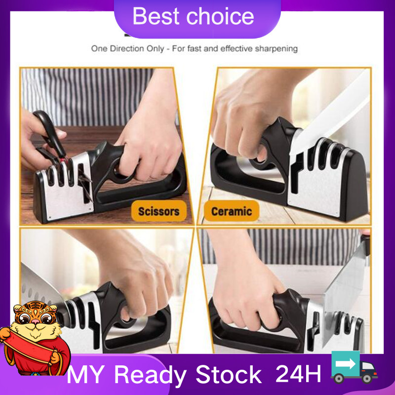 Suitable for straight knives and scissors; Designed with incredible 4-slot system; Non-slip base makes the sharpener steady; Ergonomic handle ensures comfortable and stable grip; Easy to use Specifications Color: black/green Material: ABS+silicone+tungsten steel+ceramic+diamond Size: 200*95*40mm Package list: 1*knife sharpener Descriptions: * Material: Hard blades, ABS, silicone, tungsten steel, diamond and ceramic, durable material. * 4-stage knife sharpener: With our incredible 4-slot system, including diamond sharpening rod for coarse, ceramic sharpening rod for fine sharpening and polish, tungsten sharpening rod for blunt blades and scissors sharpening rod. * Application: Designed for straight knives, such as, chef knife, steak knives, steel knives and scissors and more. * Non-slip base: Anti-skid silicone base makes the sharpener steady and easy to hold. * Handle: Ergonomic handle ensures comfortable and stable grip when sharpening. * Easy to use: Simply position the dull blade on the sharpening slot and make razor-sharpness in just seconds. * Warm tips: 1. Not suitable for serrated blades and ceramic knives. 2. Please keep the sharpening tool clean and dry. * Notes: 1. Please allowed 1-3mm differences due to manual measurement, thank you! 2. Due to the difference between different monitors, please understand that the picture may not reflect the actual color of the item. Packing list Package list: 1*knife sharpener