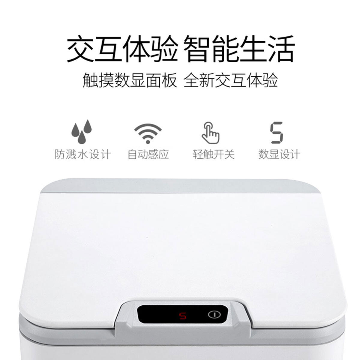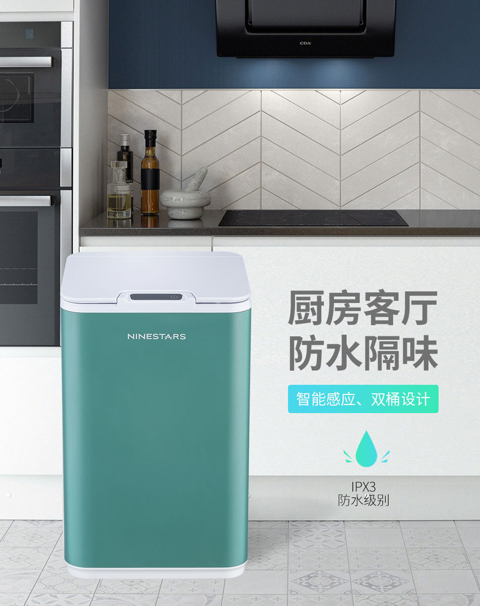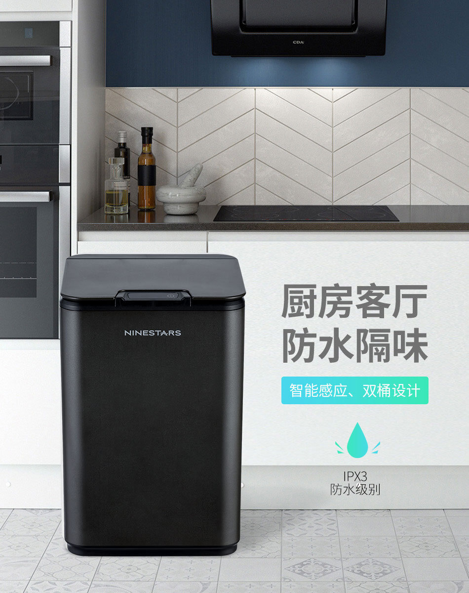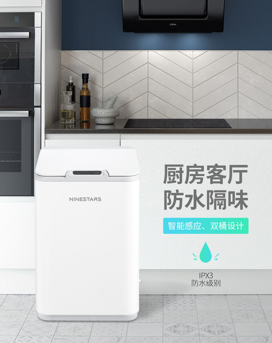 Small Beige White Ninestars Nashida Intelligent Induction Trash Can Waterproof Automatic Switch Cover Kitchen Living Room