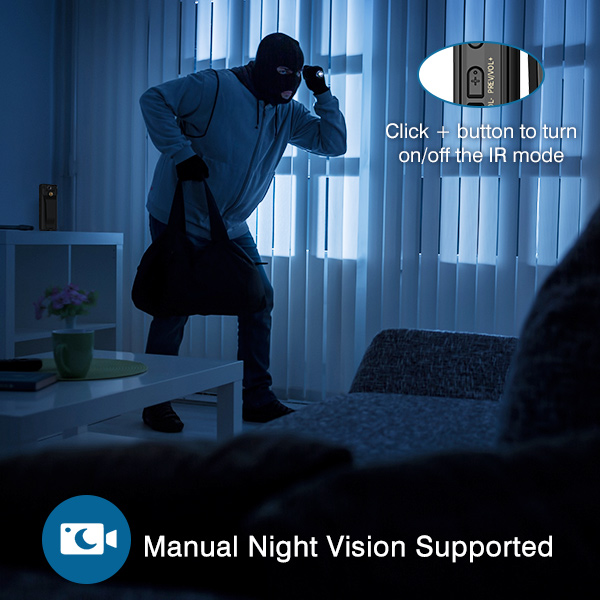 - 1080P/40M resolution are suitable for the day and night using, short press the + Button could get a night vision mode.