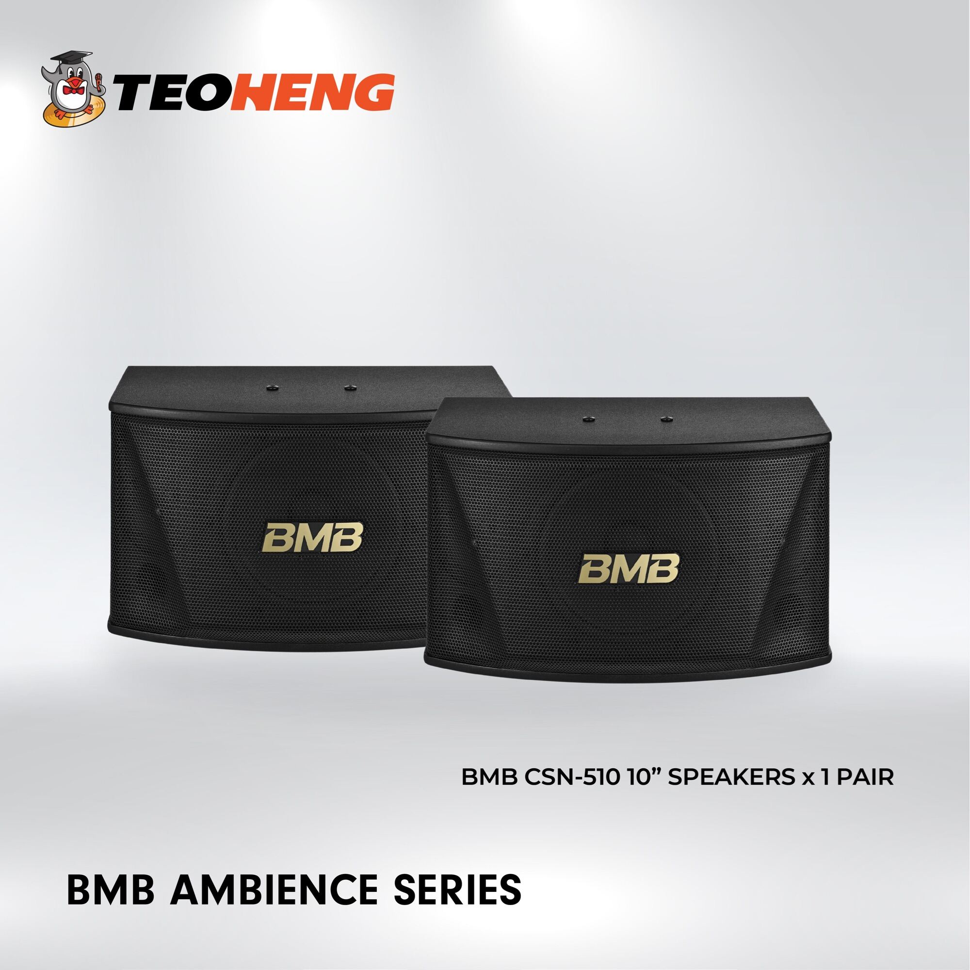 The BMB CSN Series is the top choice for entry-level karaoke speakers. It provides the best mixing of music and microphone sound to give you one of the best experiences. Like all BMB speakers, this unit has been made with high-quality components from the highly reliable paper cone which is made in Japan, to the 3D curved grill, and structurally rigid cabinet design. Even if you currently have an amplifier and speaker system, simply switching speakers will change your listening experience entirely. Music and vocals will be heard with much clarity. The new CSN-510 is a 450W speaker with a newly designed bass reflex port shape which helps produce very nice bass and has a curvaceous 3D-formed designed metal grill to protect the 2 front speakers.