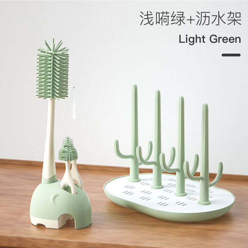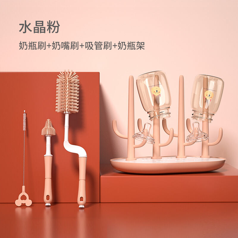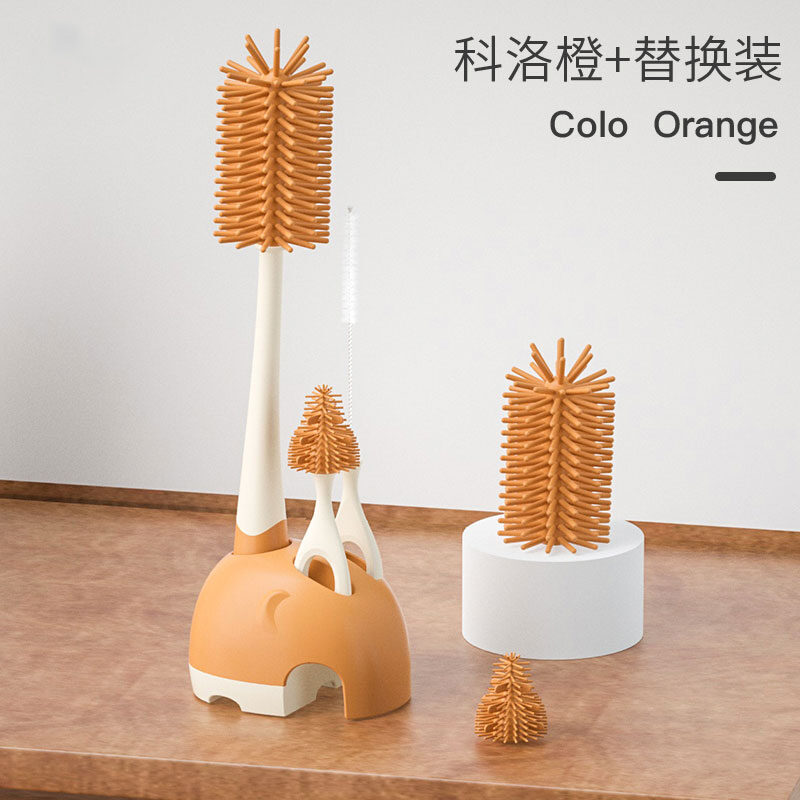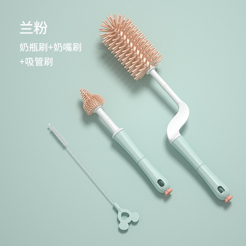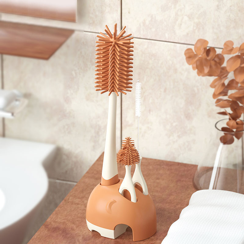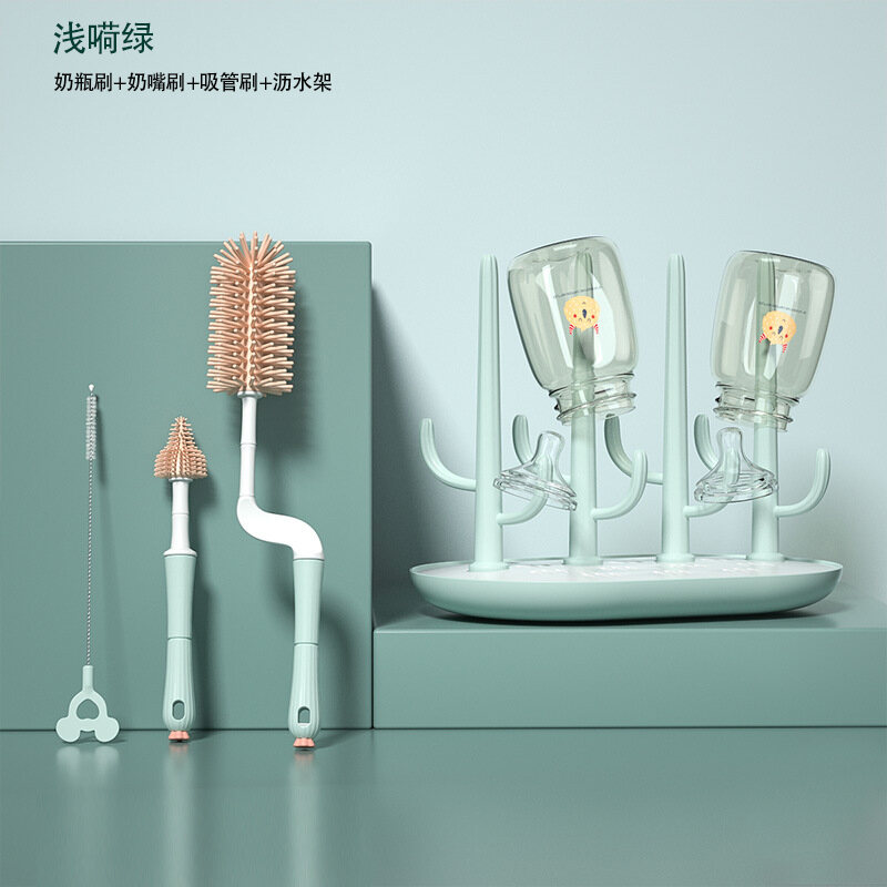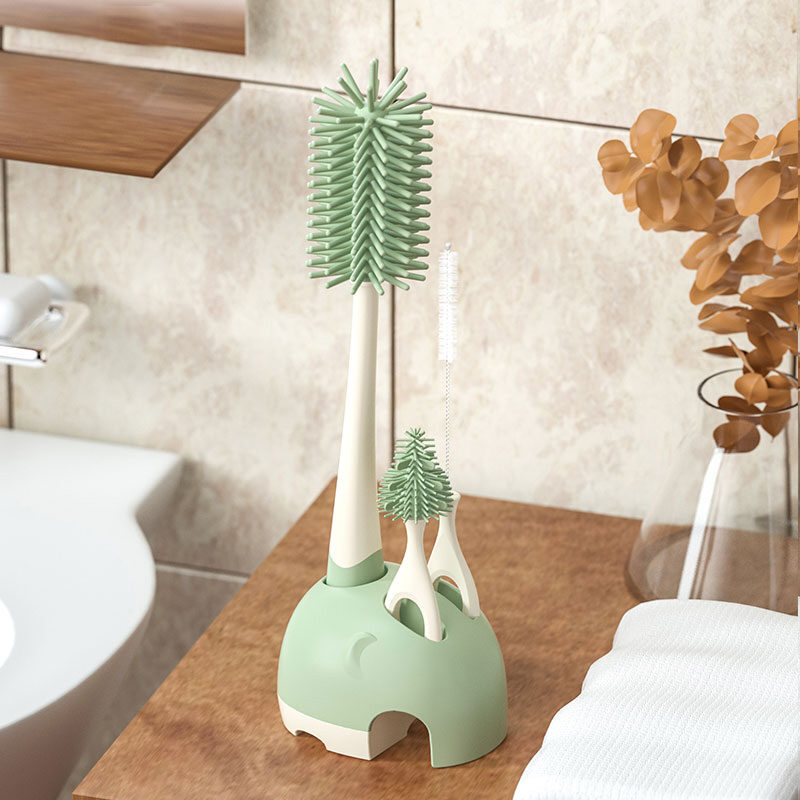 Feeding Bottle Cleaning Brush Silicone Baby Nipple Brush Straw Cleaning Artifact Feeding Bottle Shabu Set Milk Bottle Brush Storage Rack