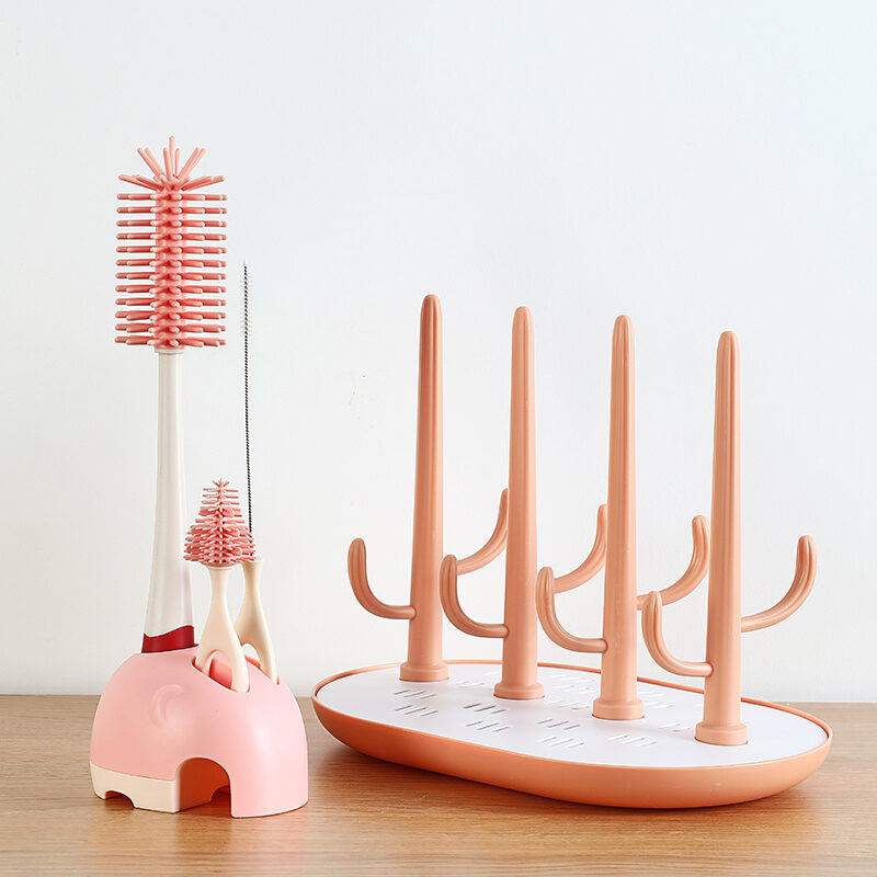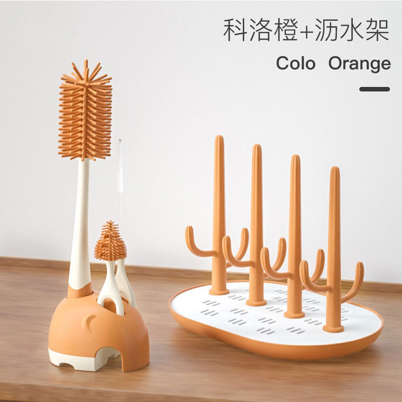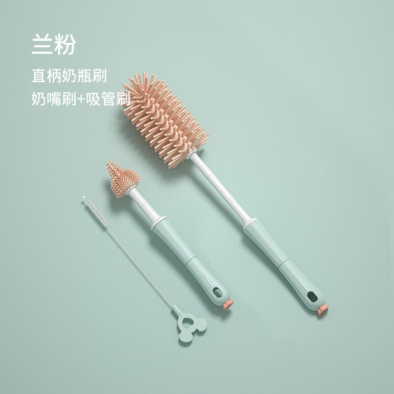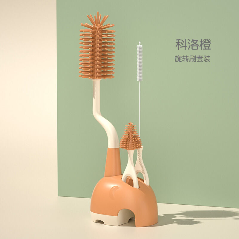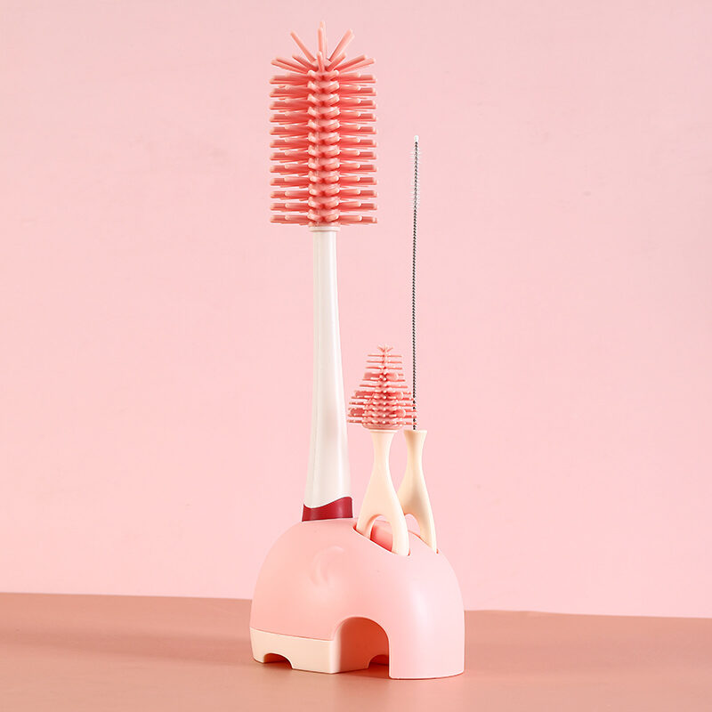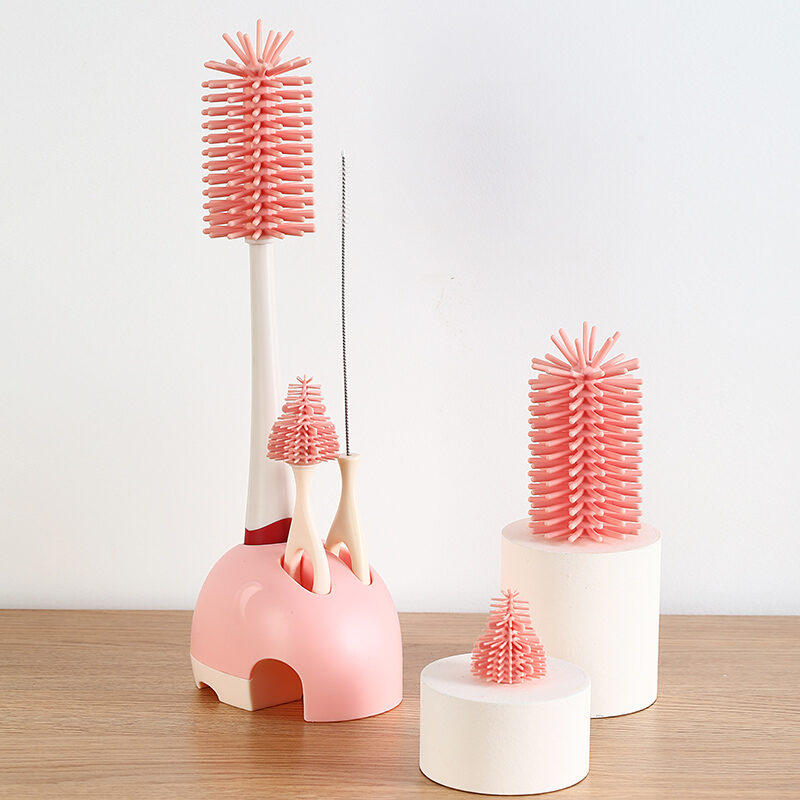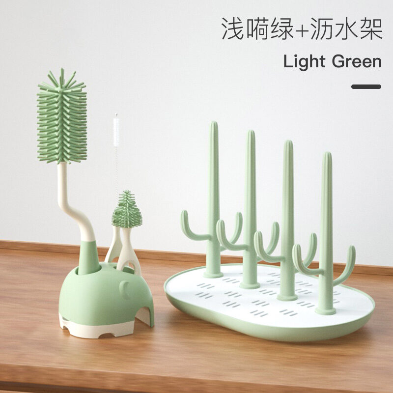 Feeding Bottle Cleaning Brush Silicone Baby Nipple Brush Straw Cleaning Artifact Feeding Bottle Shabu Set Milk Bottle Brush Storage Rack