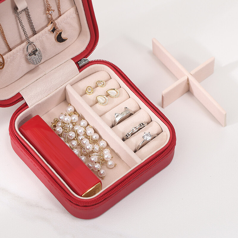 Charming Spot Mini Jewellry Storage Box Zipper Portable Travel Jewelry Box Velvet Jewelry Organizer