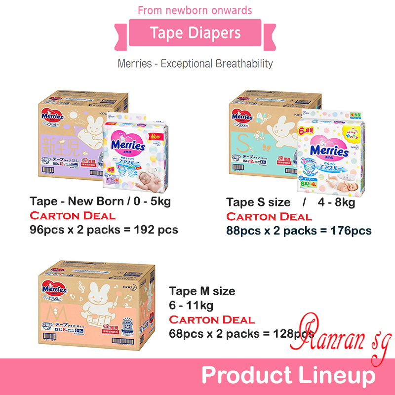 Kao Merries Tape & Pants Diaper CARTON DEAL - *Japan Domestic Sale version* / Sg Stock Ready !!!