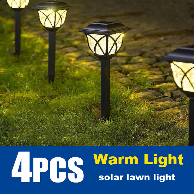 Meyou 4PCS Led Solar Garden Light Outdoor Waterproof Automatic Sensor Lawn Lights Retro Solar-Powered Rechargeable Fence Lamp for House Yard Patio Pathway Park Landscape Lighting Decorative Warm White