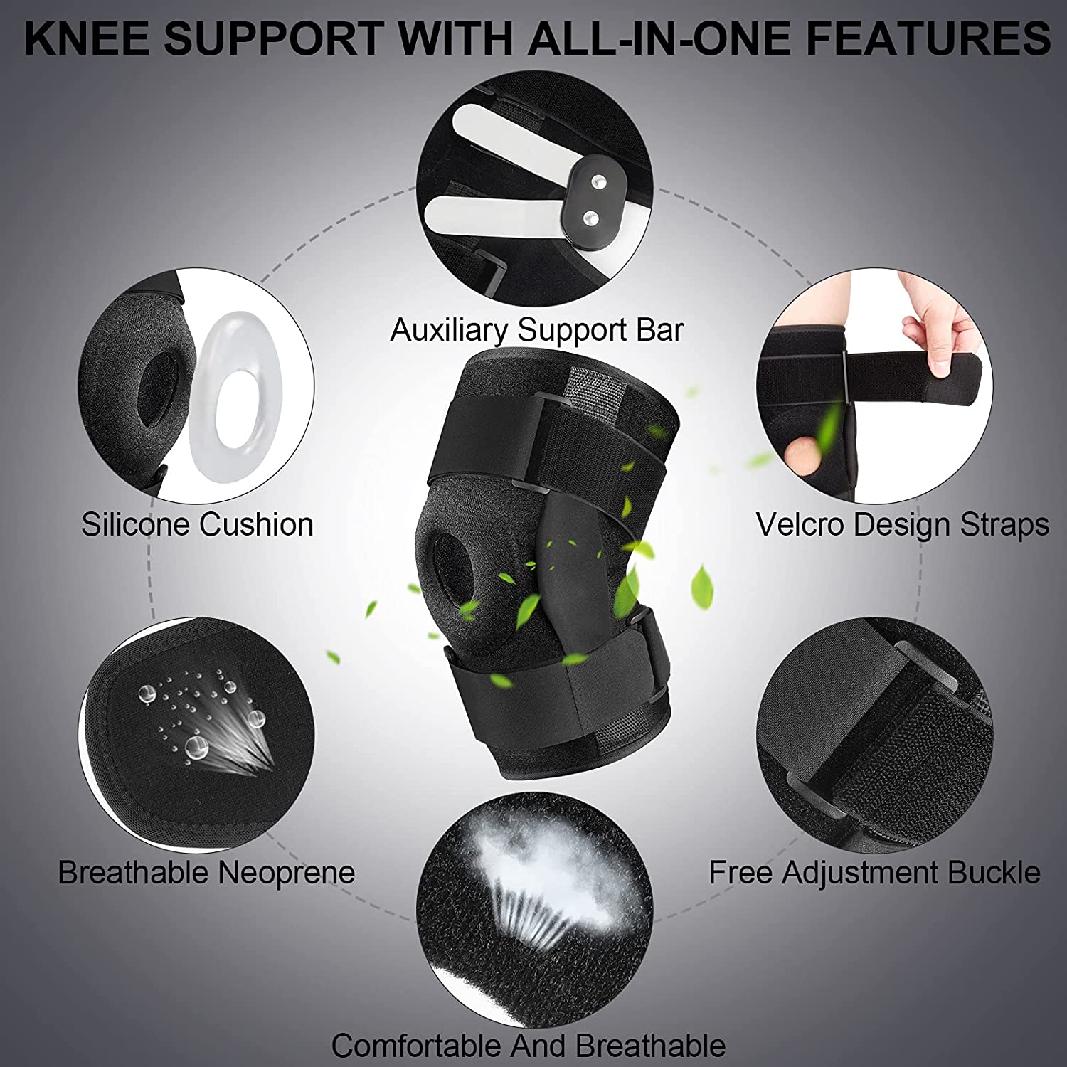 Exclusive Patent: Knee Brace with Side Spring Stabilizers & Patella Gel Pads. Strengthen Joint Support and Reduce Knee Load.