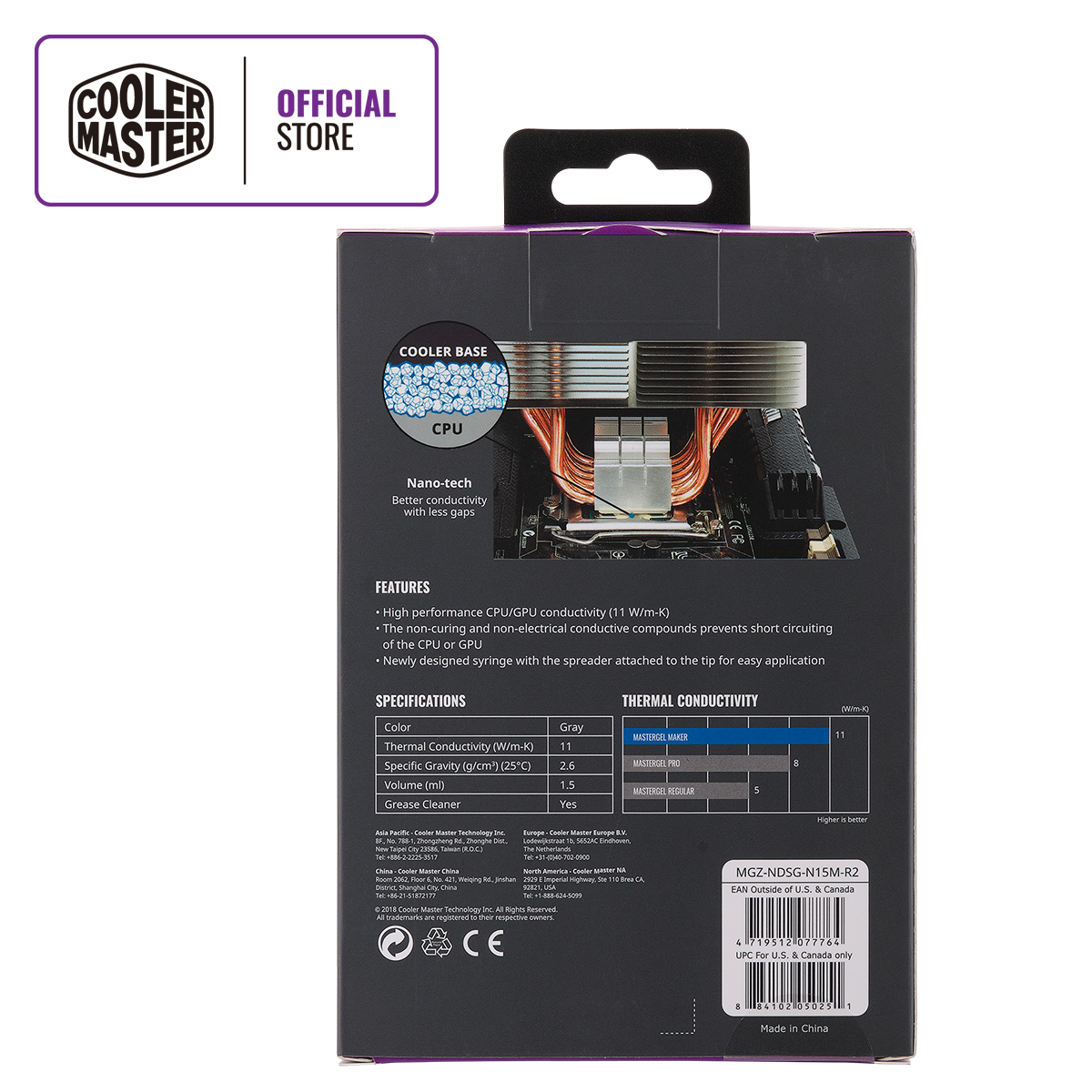 • 1.5mLCooler Master MasterGel Maker Thermal Paste, 11 Thermal Conductivity, Flat-nozzle Syringe Design