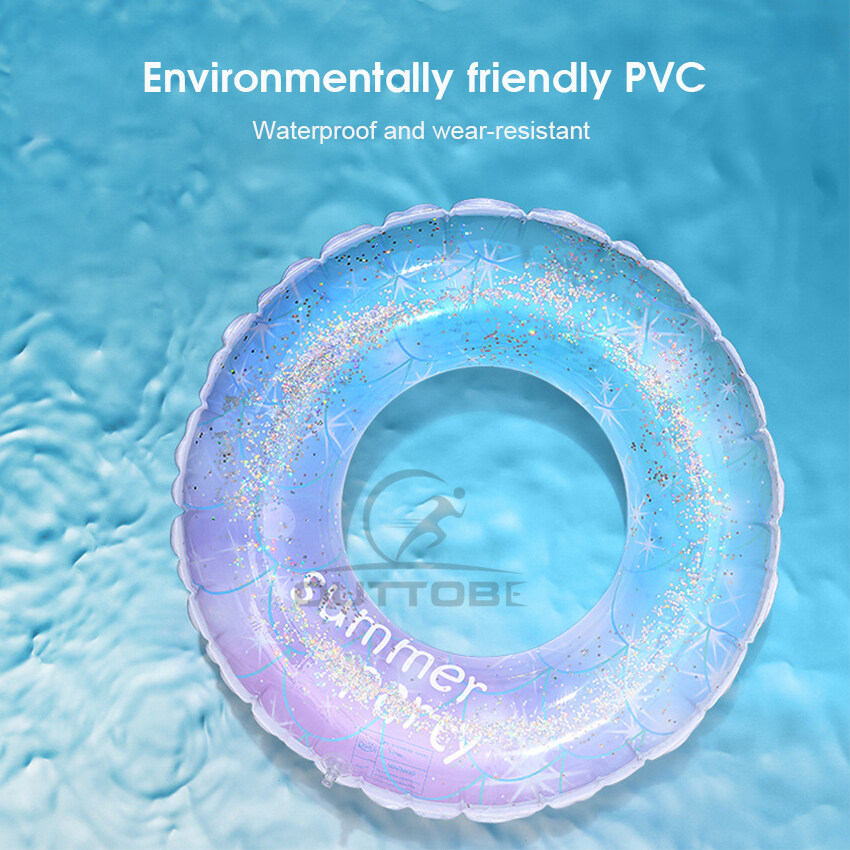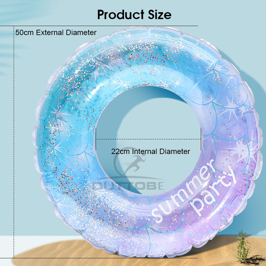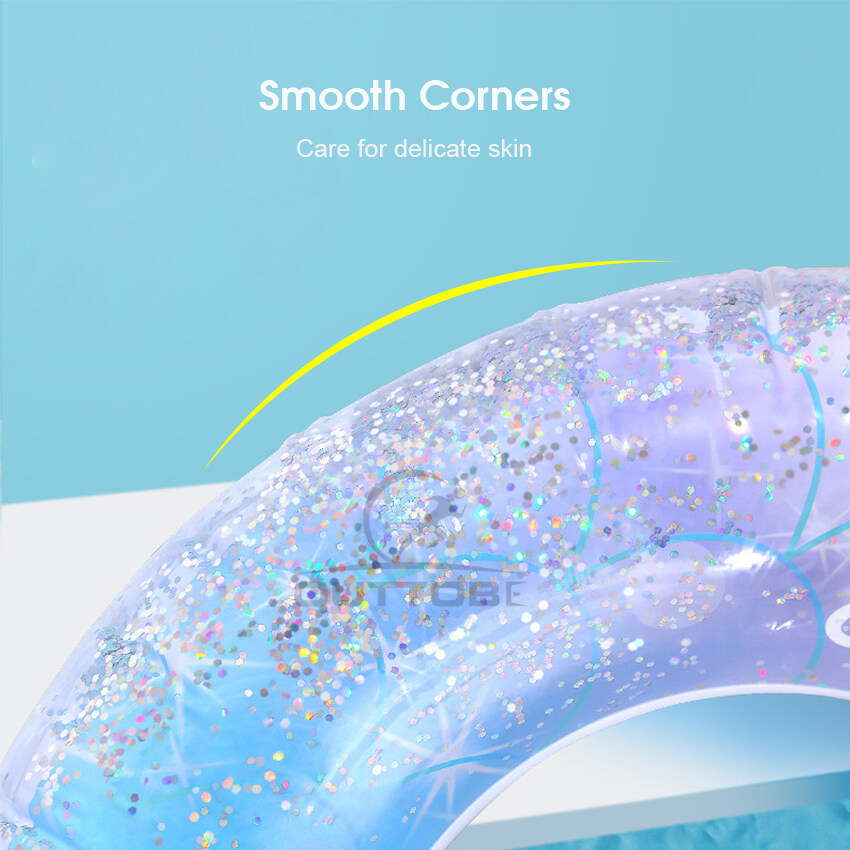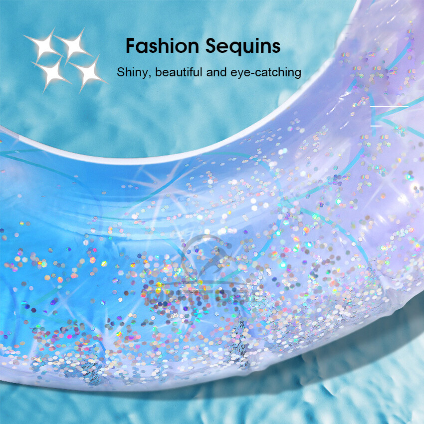 Outtobe Rainbow Swimming Ring Transparent Glitter Pool Floats Swimming Ring Adult Children Inflatable Pool Tube Giant Float Boys Girl Water Swim laps Swimming Ring with Handle