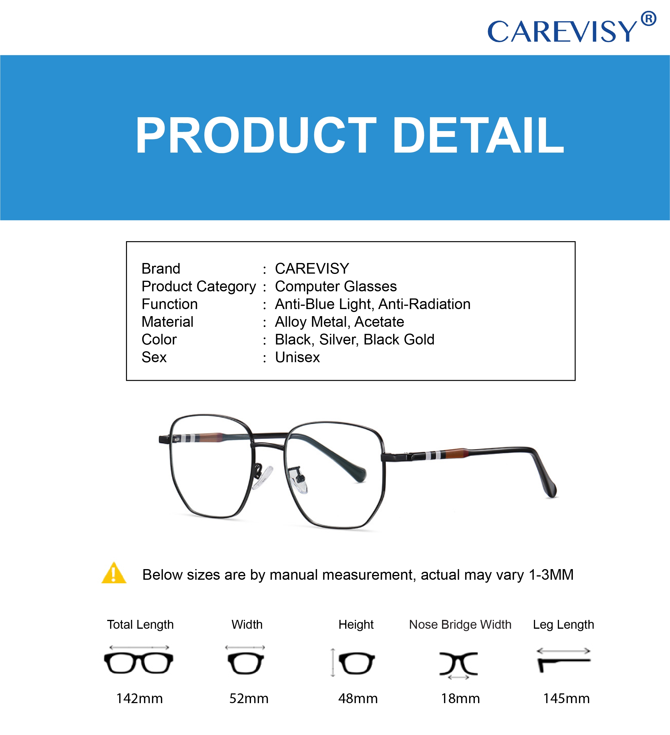 Welcome to CAREVISY, a professional Eyewear brand. We provide high quality Reading Glasses, Computer Glasses, Sunglasses and other Eyewear Accessories at affordable prices based in Singapore. Customer's satisfaction is our top priority. We valued customer's time and we will post out your order by next day. Afterwards, logistic team will pick up your parcel and delivery it to you, expected delivery time by logistic team is about 1-2 working days. Feel free to contact us if you have any queries. Care for your vision and enjoy your shopping now!