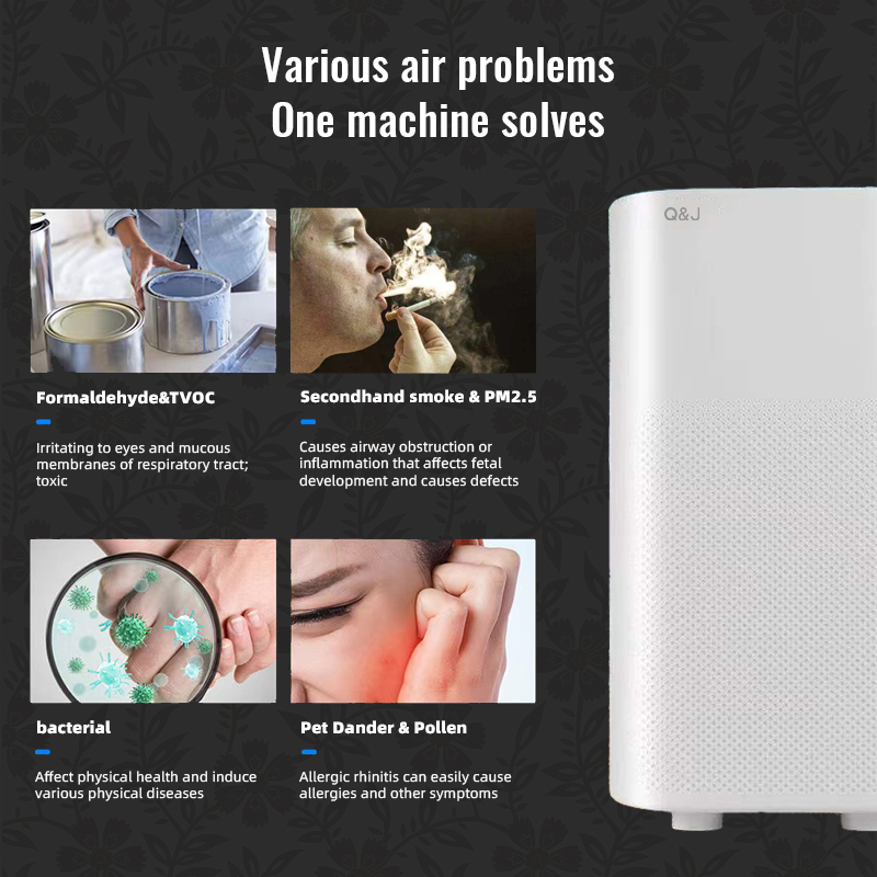 Say goodbye to polluted air: Even indoors, you can be exposed to pollutants such as cigarette smell, oil fumes, pet dander, dust, pollen, infectious viruses, and more. Now you can use our products to help you end these pains and protect the health of your babies and seniors.
