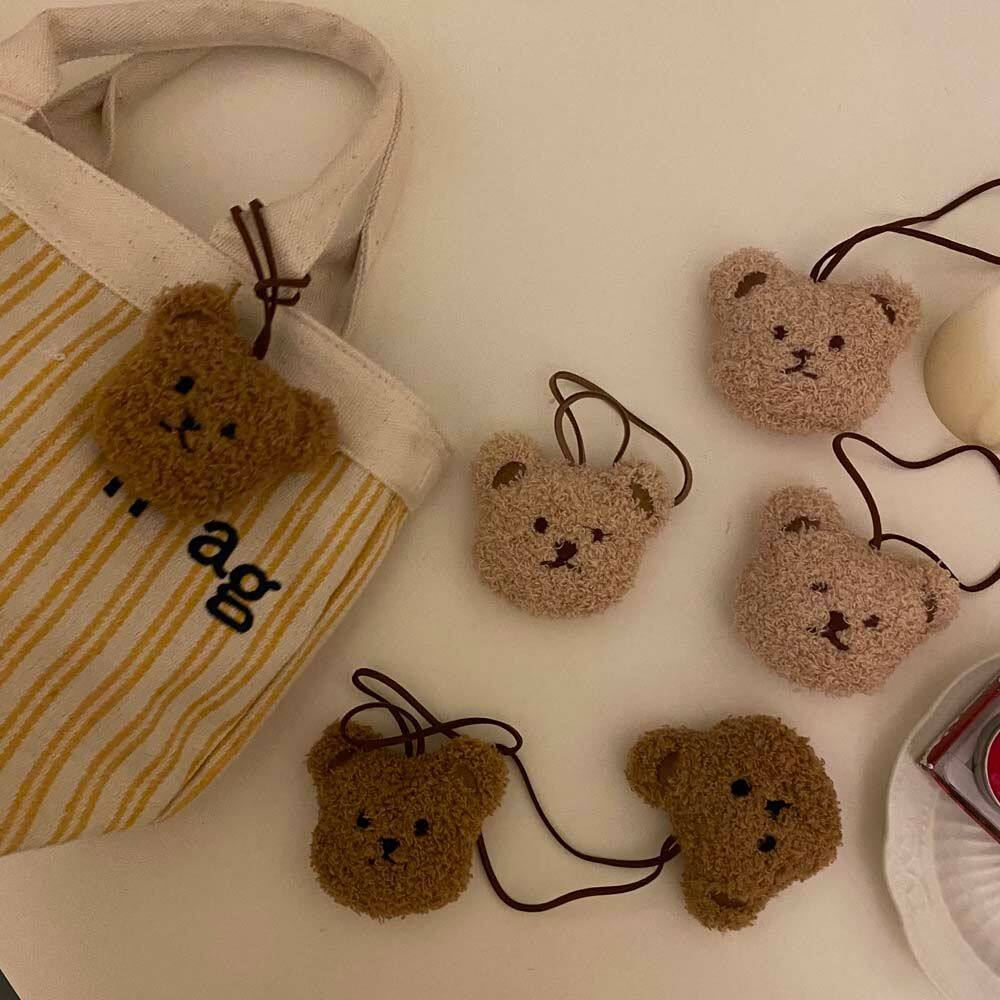 ARTMU Cute Girls Gift Hanging Ornaments Fashion Jewelry Cartoon Pompom Car Key Ring Bag Pendant Plush Dolls Bear Head Keychain