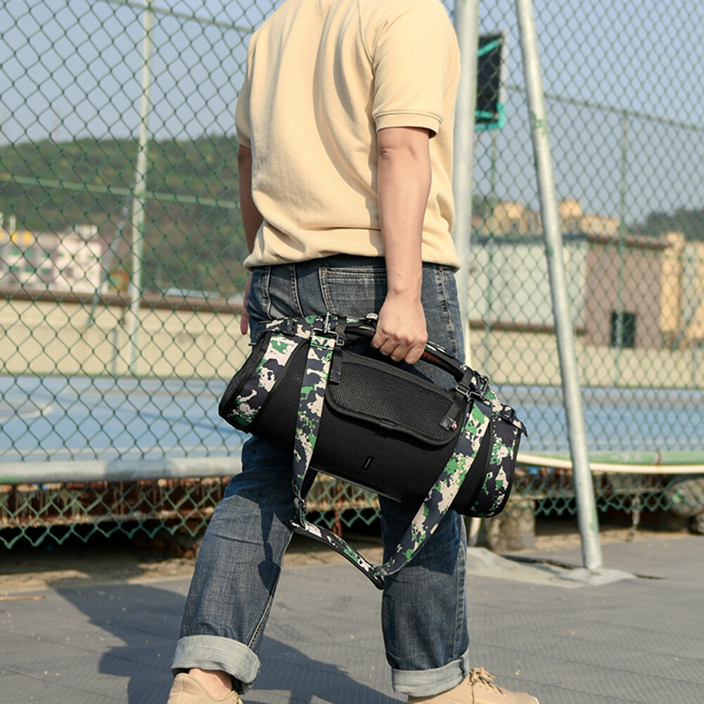 2. High-quality Material: The inner layer of twill cloth on both sides is protected by PVC dripping glue+nylon webbing, which is wear-resistant, dirt-resistant, anti-seismic and fall-resistant, and can be easily carried and protected during travel. The mesh on both sides of the strap is designed with a unique sound permeable and breathable material, which also plays a good role in heat dissipation and ventilation. There is no need to remove the strap when using, and music can also be played while carrying. This material is soft and foldable, lightweight and space-saving.