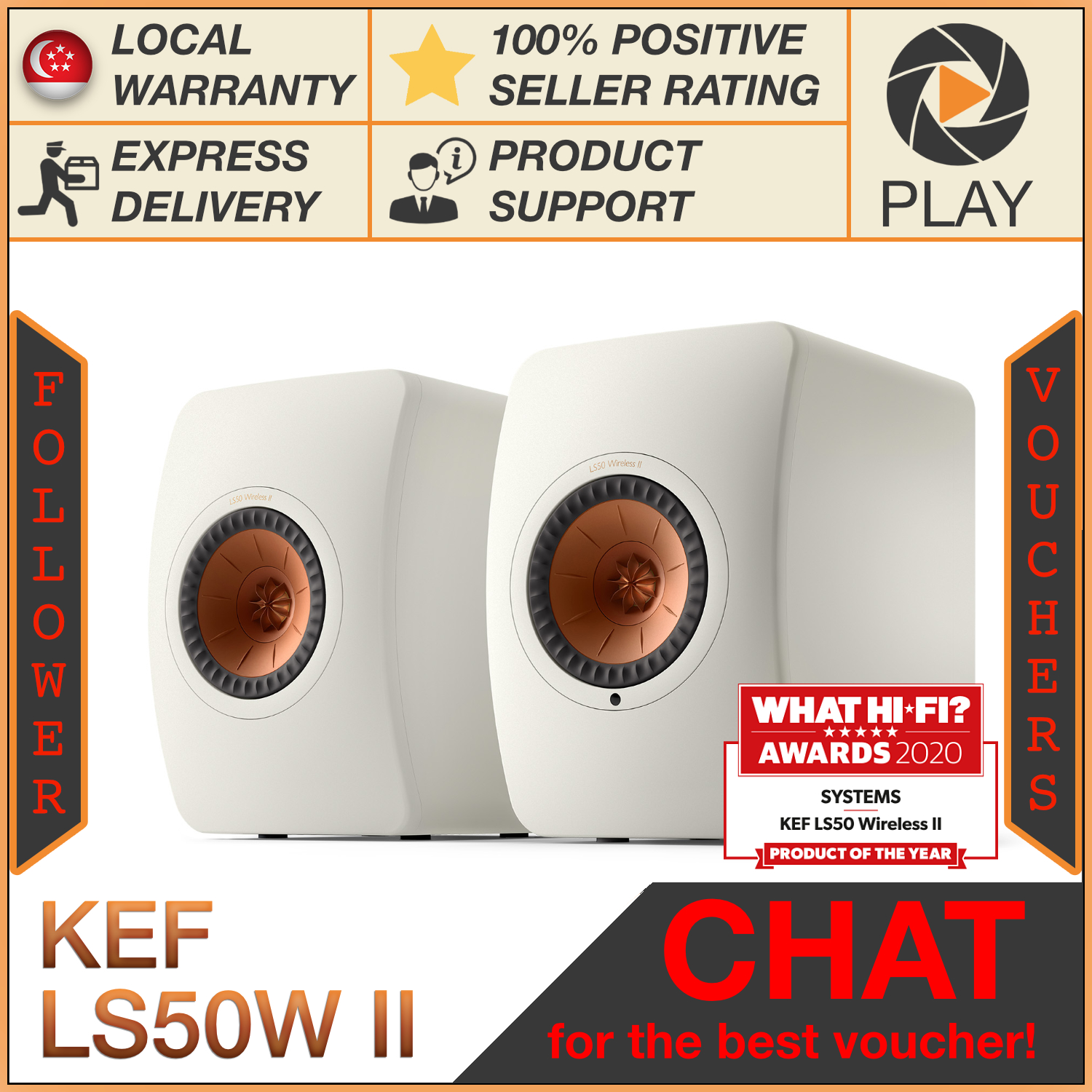 KEF LS50 Wireless II Active Bookshelf Speakers KEF LS50W II LS50W 2 (FOC installation)