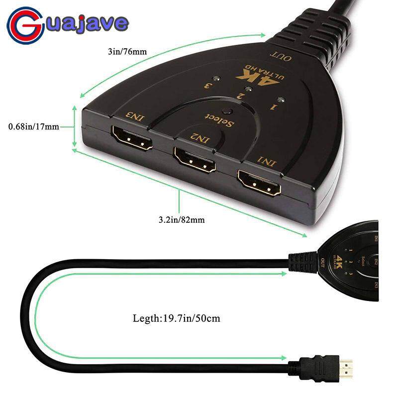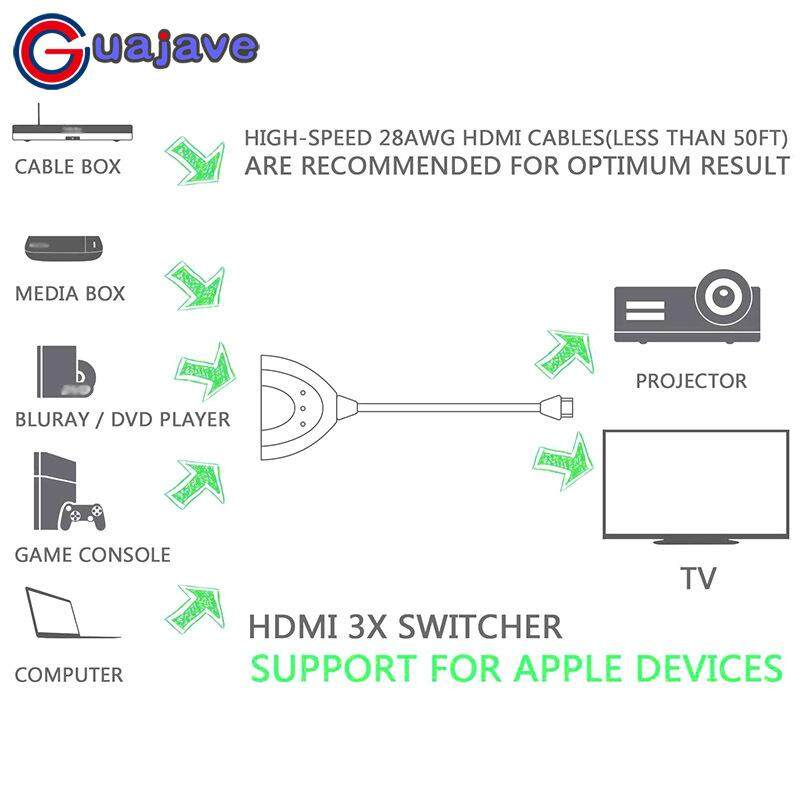 3-Port HDMI Switch - 3 HDMI ports in and 1 HDMI out for various HDMI devices, such as Xbox One S, Xbox 360, PS3, Beamer, DVB Receivers, Blu-ray Player, Apple TV, Laptop, HDTV/HD Monitor.
