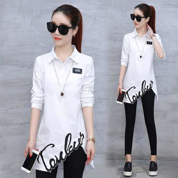 Large Size Women's Spring And Autumn Slim Thin Embroidered Shirt Women's Shirt