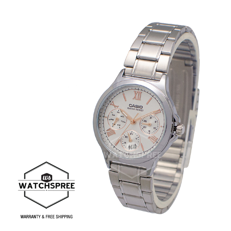 [Watchspree] Casio Ladies' Multi-Hands Silver Stainless Steel Band Watch LTPV300D-7A2 LTP-V300D-7A2