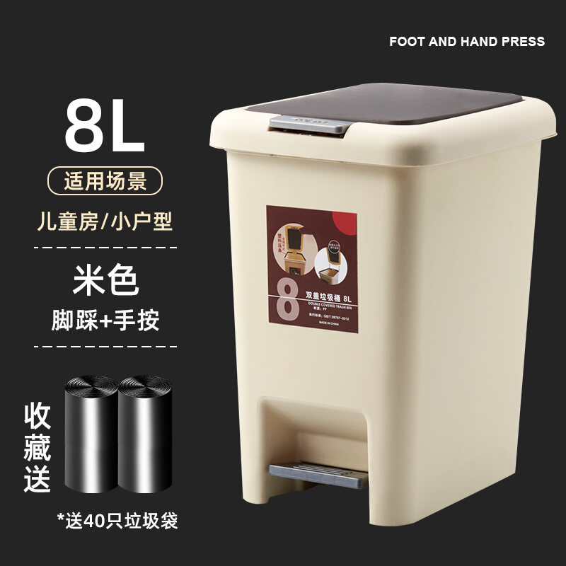 Household Trash Can with Lid, Covered Toilet, Living Room, Bedroom, Pedal-Type Small Paper Basket, Large Capacity