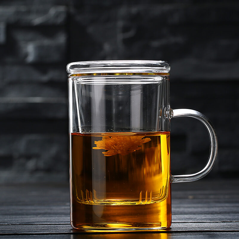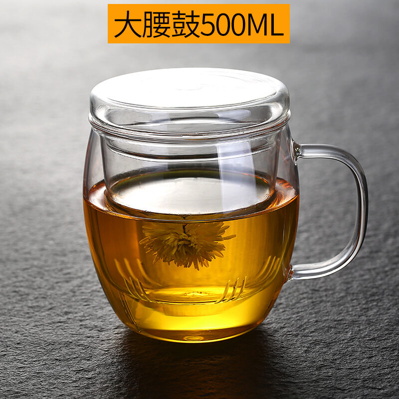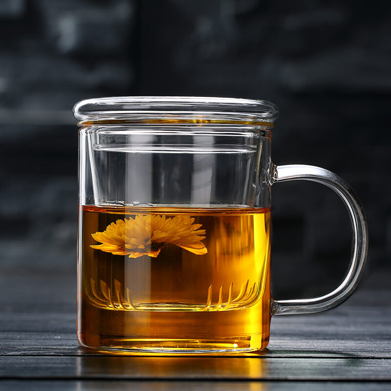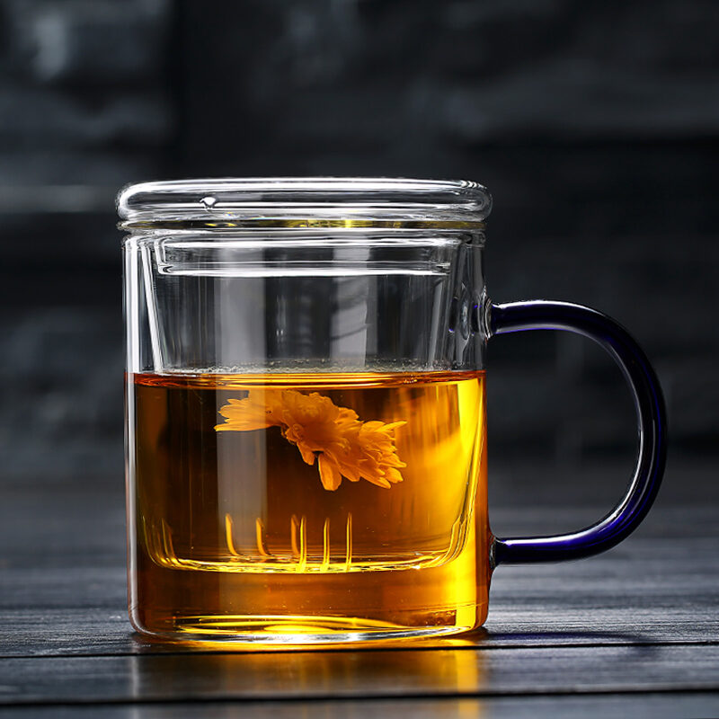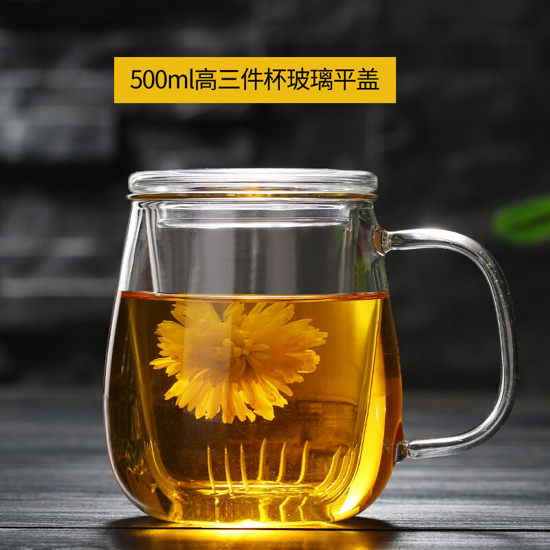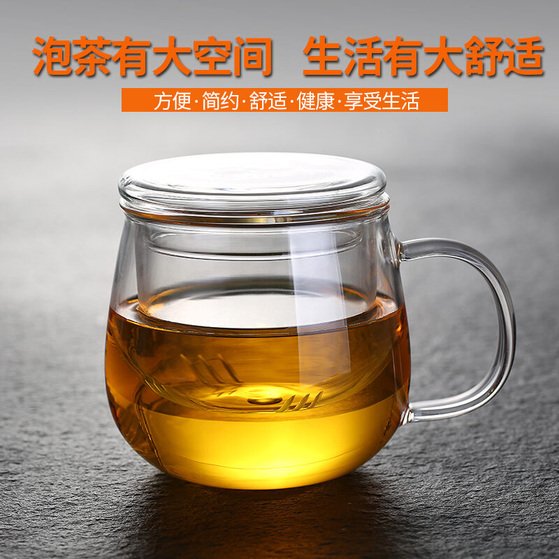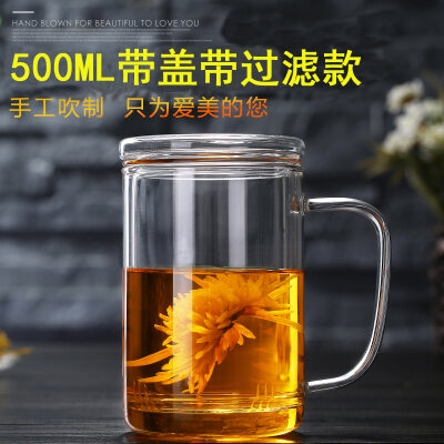 Transparent Glass with Handle Heat-Resistant Flower Tea Cup Tea Cup Coffee Cup Filter Liner Office Cup Piaoyi Cup Thickened