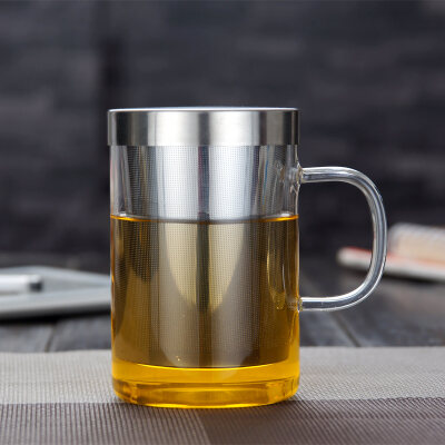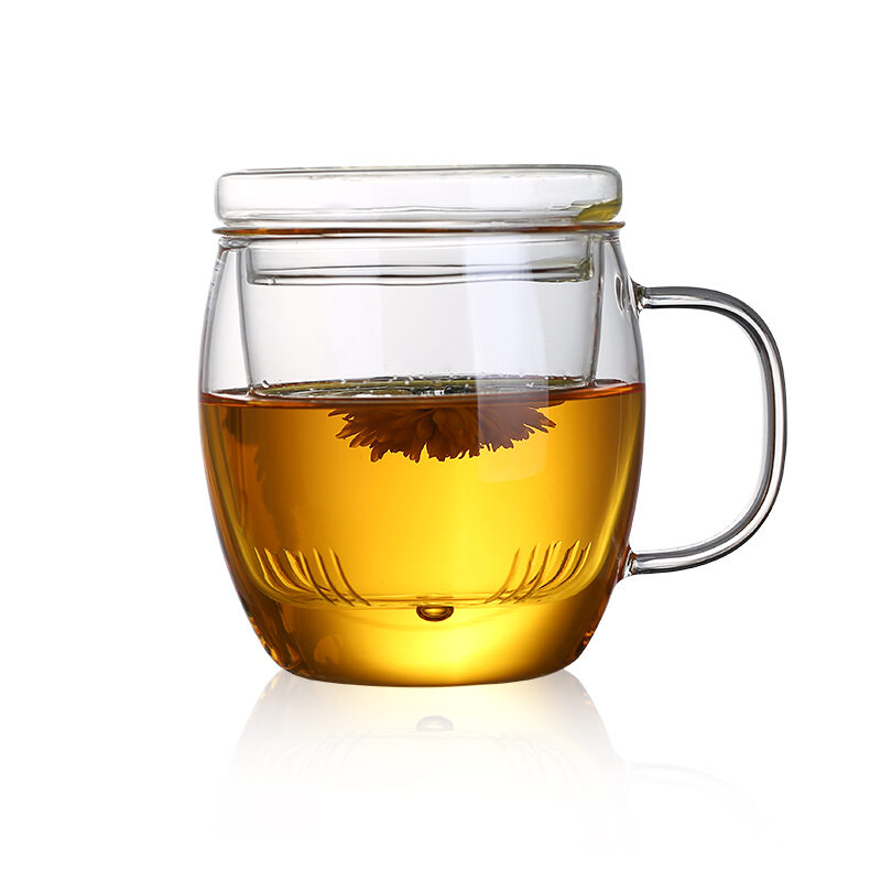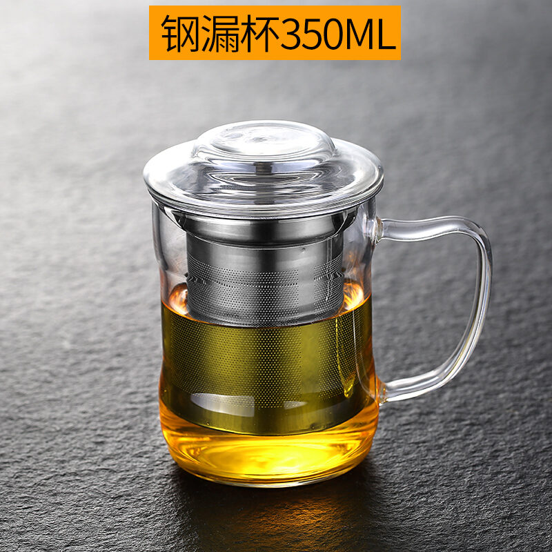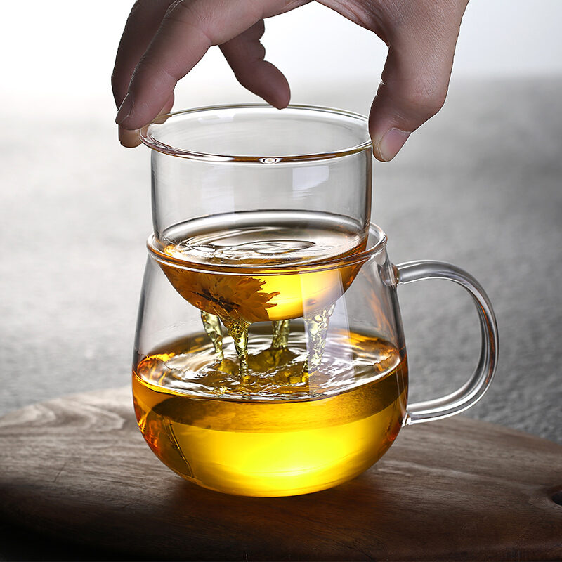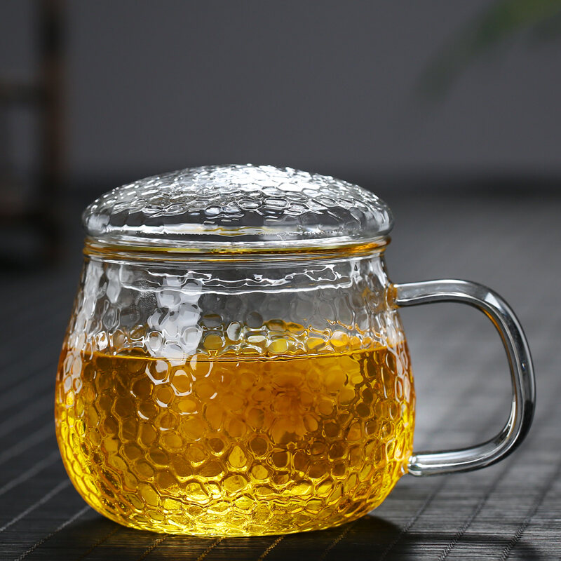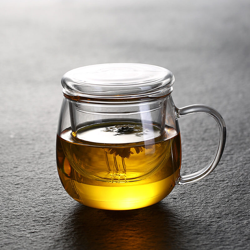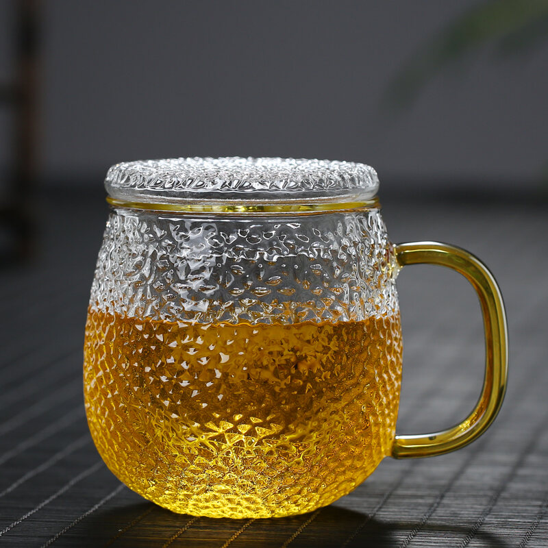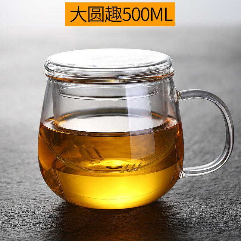 Transparent Glass with Handle Heat-Resistant Flower Tea Cup Tea Cup Coffee Cup Filter Liner Office Cup Piaoyi Cup Thickened