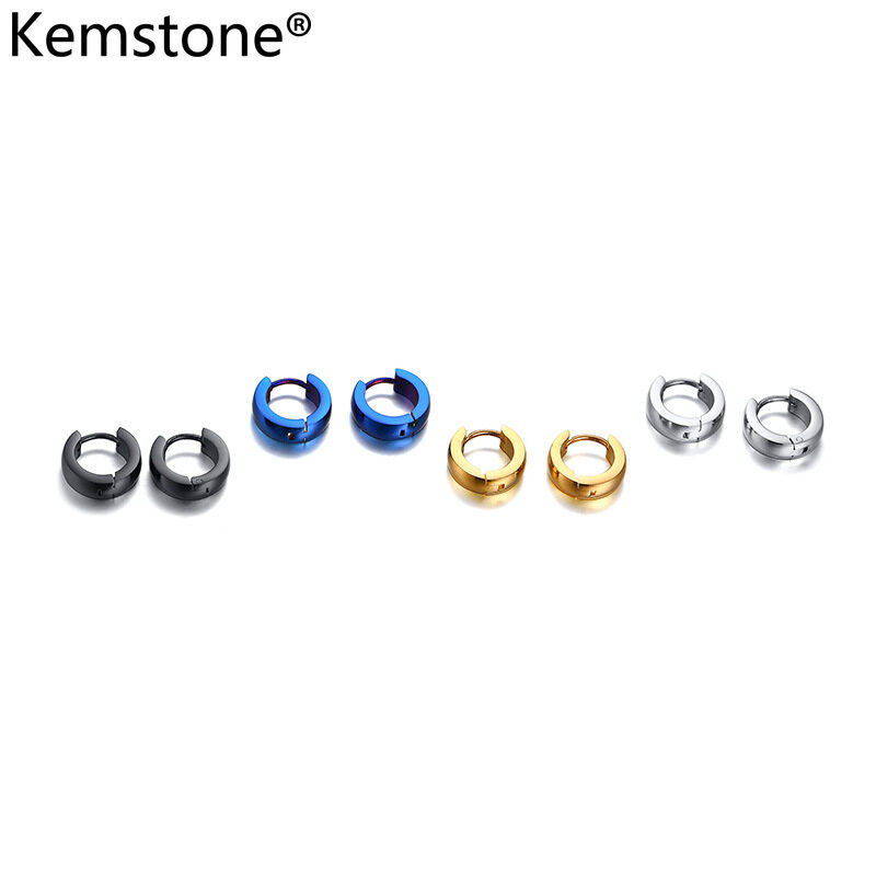Kemstone Simple 4MM Stainless Steel Silver/Gold/Blue/Black Small Hoop Earrings for Men Women