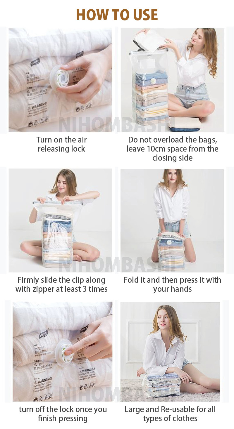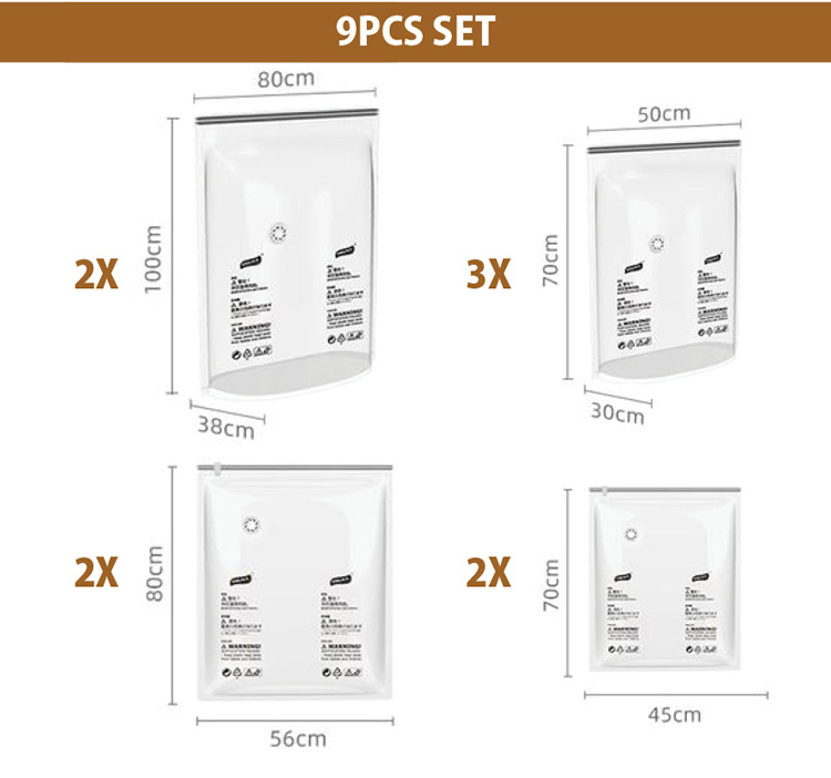9pcs-Three-Dimensional Vacuum Bags For Clothes No Pump Needed Hand Pressure Storage Bag Closet Clothing Organizer Space Saving Bag
